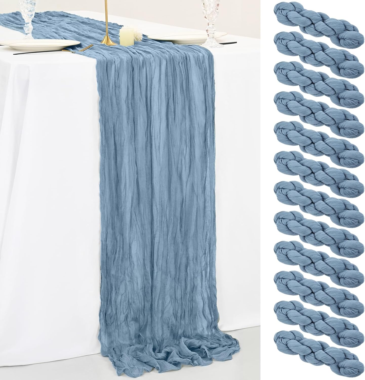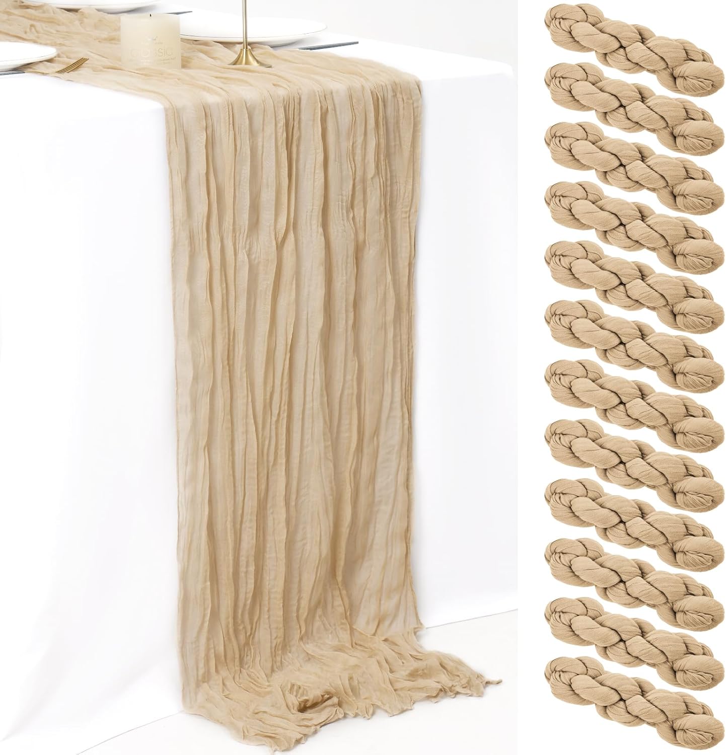 12 Pack Cheesecloth Table Runner 10Ft Gauze Tablecloth Boho Rustic Decorations for Wedding Decor Reception Bridal Shower Holiday PartySpecificationSize: 35 x120 InchColor: Hot PinkMaterial: 100% Cotton GauzeStyle: BohemianFeaturesMade using a special technology of hand-dyed. Has intentional wrinkle/fold texture stylePremium cotton linen gauze table runner is made from natural soft cheesecloth gauze fabric.Delicate and soft, this handmade boho table runner is an ideal décor accent for any occasion.Give your wedding arch or arbor a rustic or boho look with these chic table runners.Especially for rustic weddings or bohemian themed parties, sand ceremonies, Valentine's dinner, garden dinner, kitchen table and other special event.Place on your plain wooden table for that ravishing rustic look, or spread atop tablecloths and table linens with centerpieces, flower vases, candles, or table scatters for a dazzling decorative touch. Note1. Manual measurement, there will be an error of 1-2cm.2. The color of the display screen of mobile phone and computer is different, there will be color difference, please understand.3. Hand wash only, No dry cleaning, Shedding is possible, Sun fading is possible, Keep away from fire, Dry vertically, to make it flat Wrap as a ball to make it wrinkled.