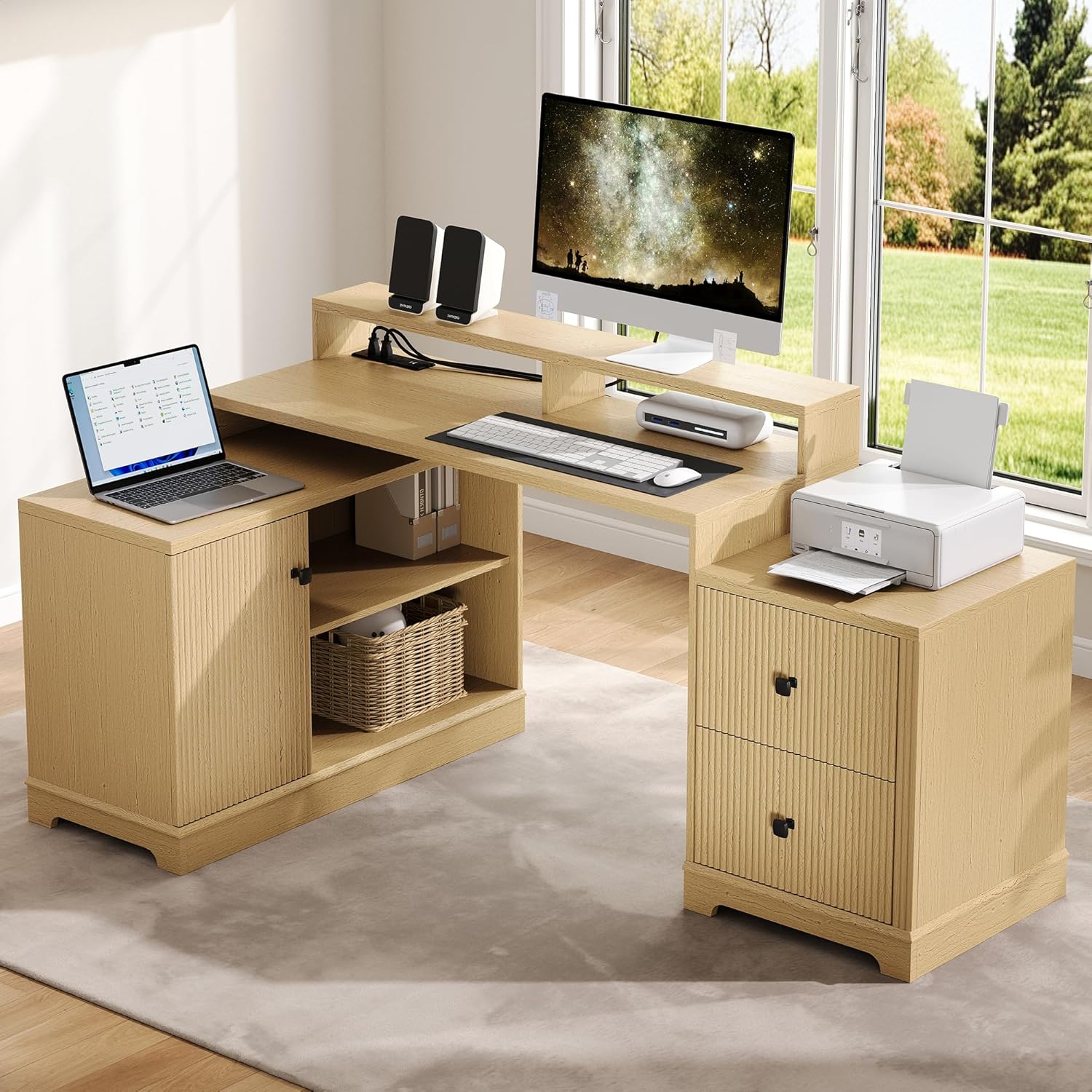 | Storage Options | 2 drawers, 1 open shelf, 1 storage cabinet |