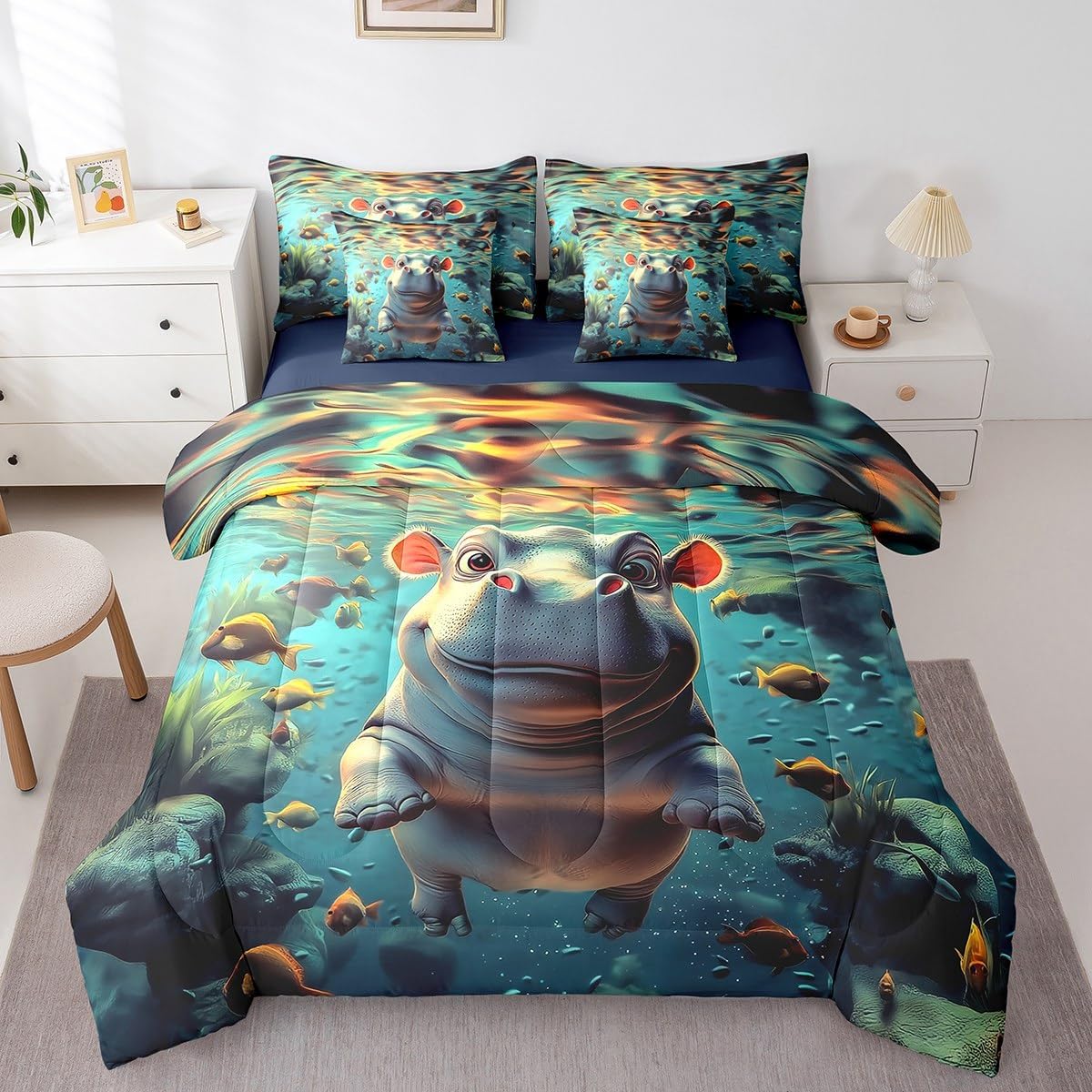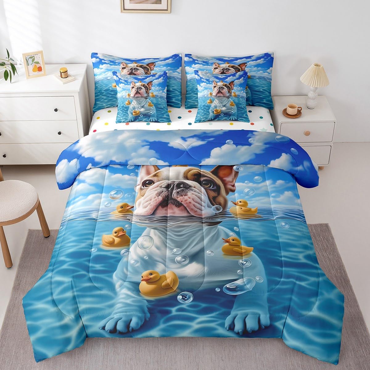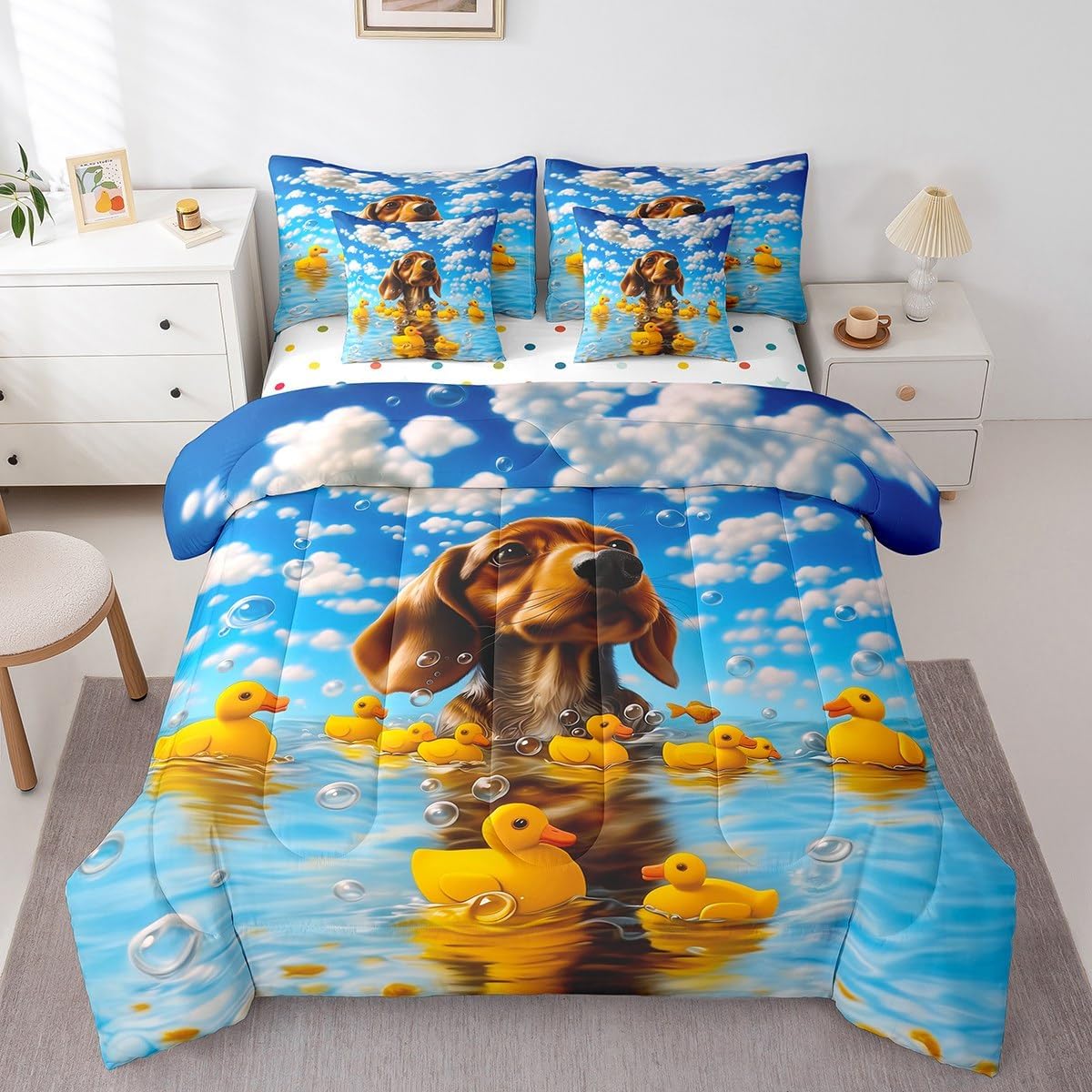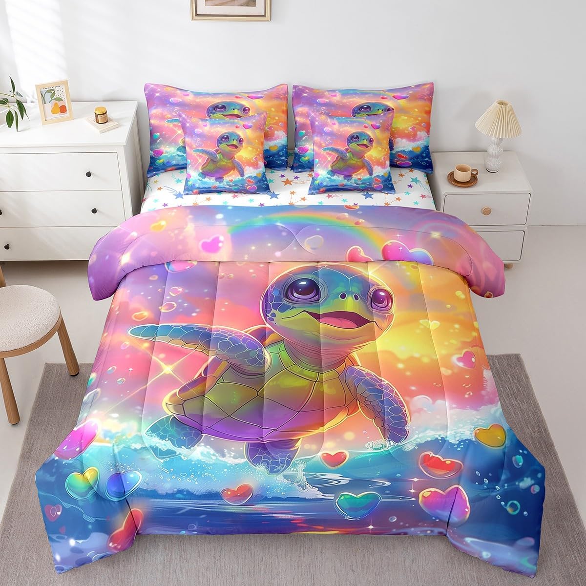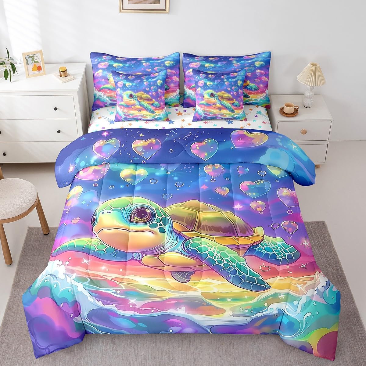 7 Pieces Full Size Cute Otter Comforter Set,Sketch Love Heart Dreamy Bedding Set for Girls Women,Shell Starfish Cartoon Ocean Animal (Comforter+Fitted+Flat Sheet+2 Pillowcases+2 Throw Pillow Covers)