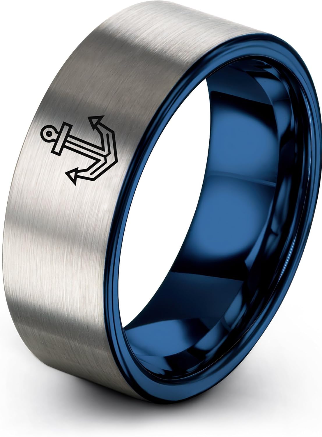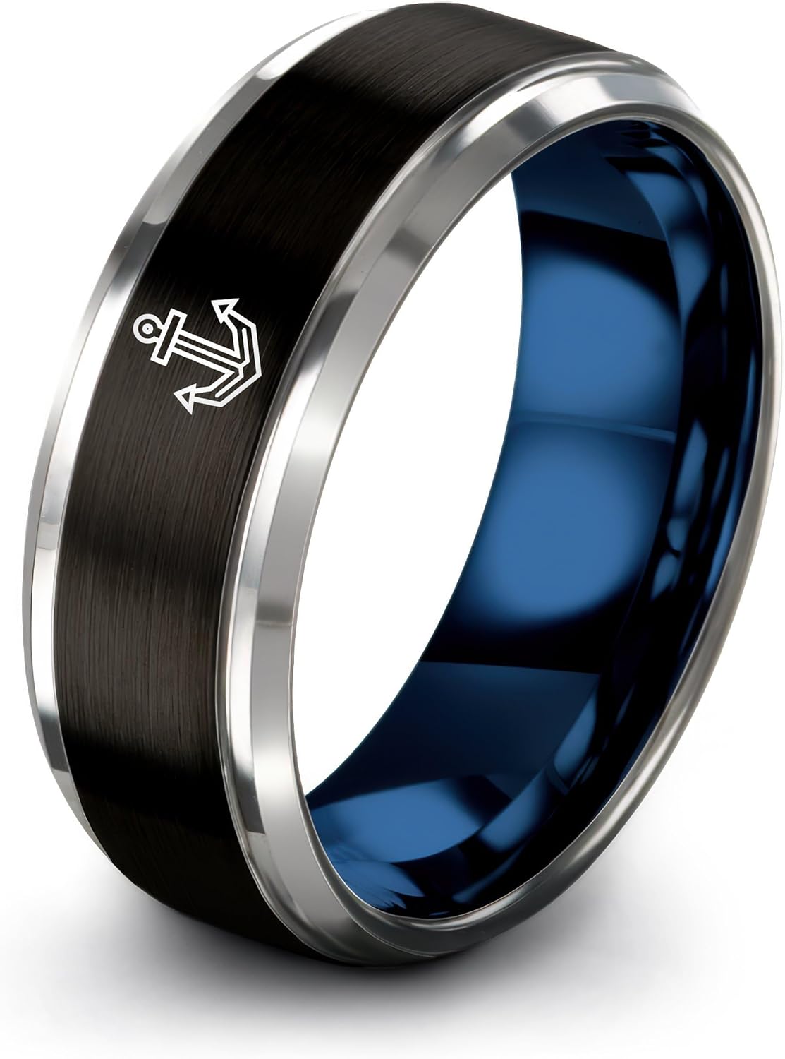 Tungsten Band- Men - Women - 18k Rose Gold Step Bevel Edge - Yellow - Grey - Blue - Black - Brushed - Polished - Wedding - Gift Dome Flat This great tungsten carbide Fashion Ring / Wedding band for both men and woman is hands down what you have been looking for. The modern sleek look and comfort fit feel of our rings come in a variety of designs. Each unique design is available in:Rose GoldYellow GoldPolished BlackBrushed BlackBrushed GrayThey are also available inFlat CutDome CutStep Beveled EdgeWe have a wide array of design combinations along with unique art we have created to sport your passion. All our rings are tungsten carbide and are made in comfort fit designs for the best fit possible. We pride ourselves in carrying whole and half sized that range from 4 to 15 as well offer 8mm width to show off.