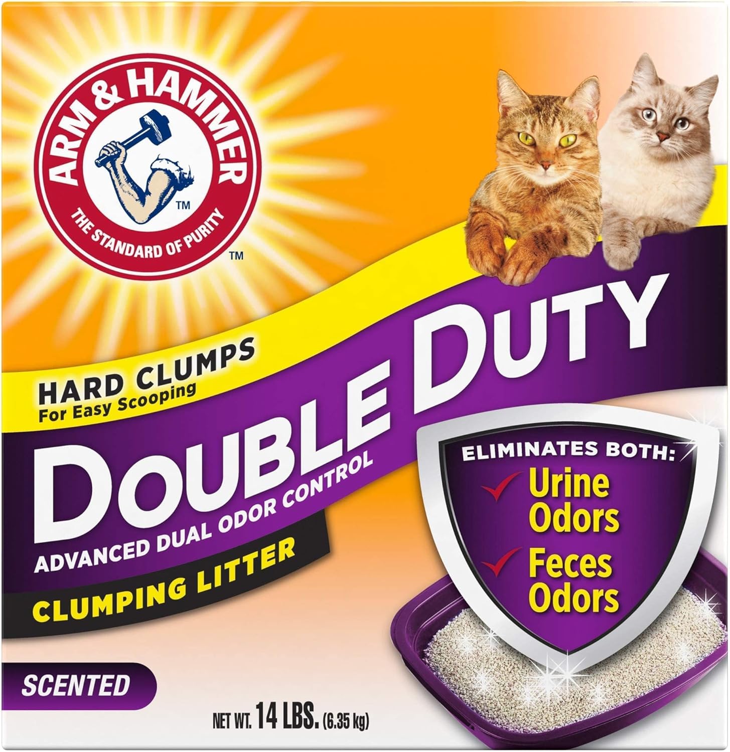 ARM & HAMMER Double Duty Clumping Cat Litter’s breakthrough formula destroys urine AND feces odors on contact for dual advanced odor control that helps your home stay fresh and clean. Hard clumps let you remove the source of odors quickly and easily.