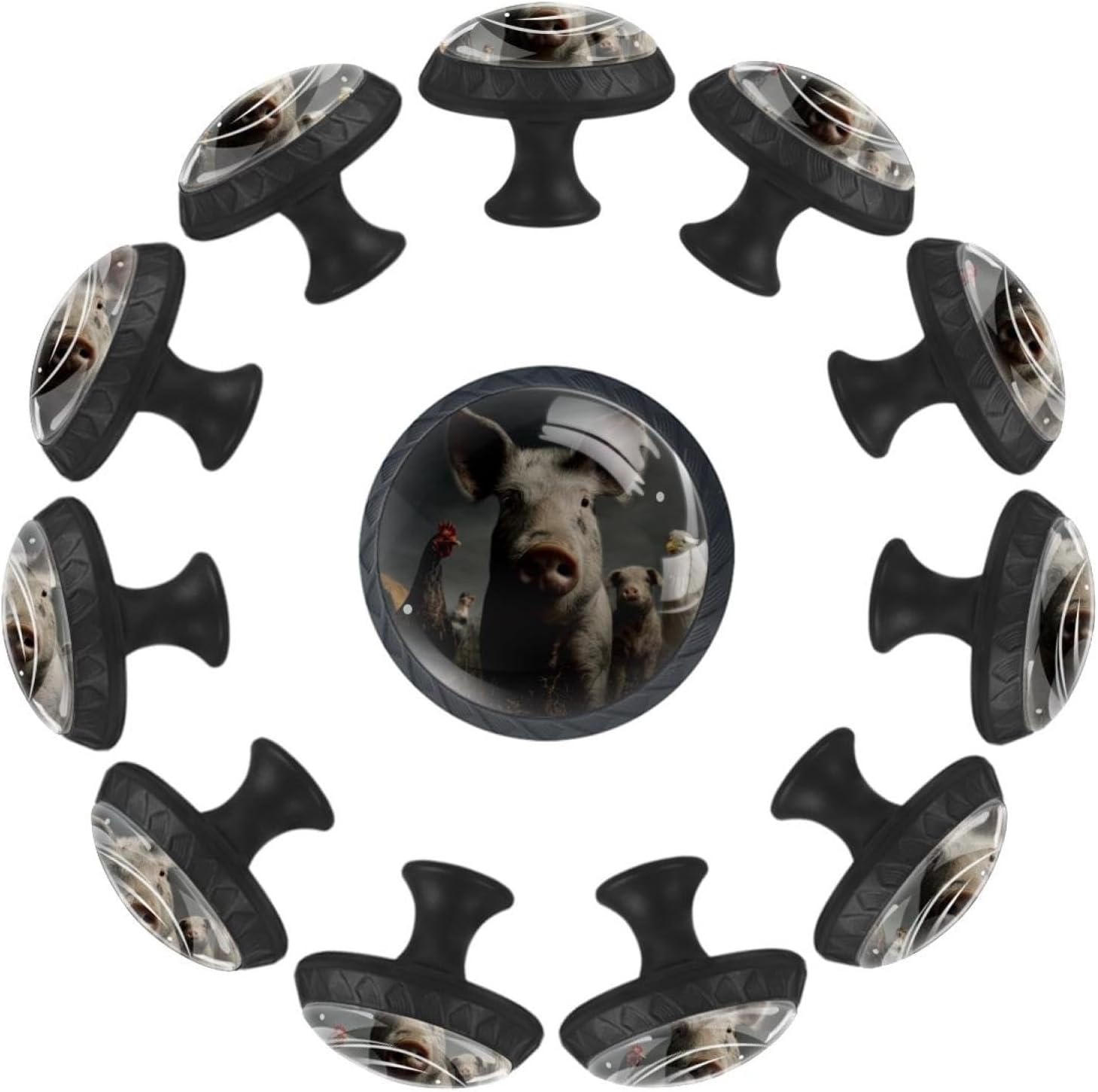 Black Farm Animals (6) Multi-Function Drawer Knobs, Decorative Cabinet Pulls for Wooden Furniture