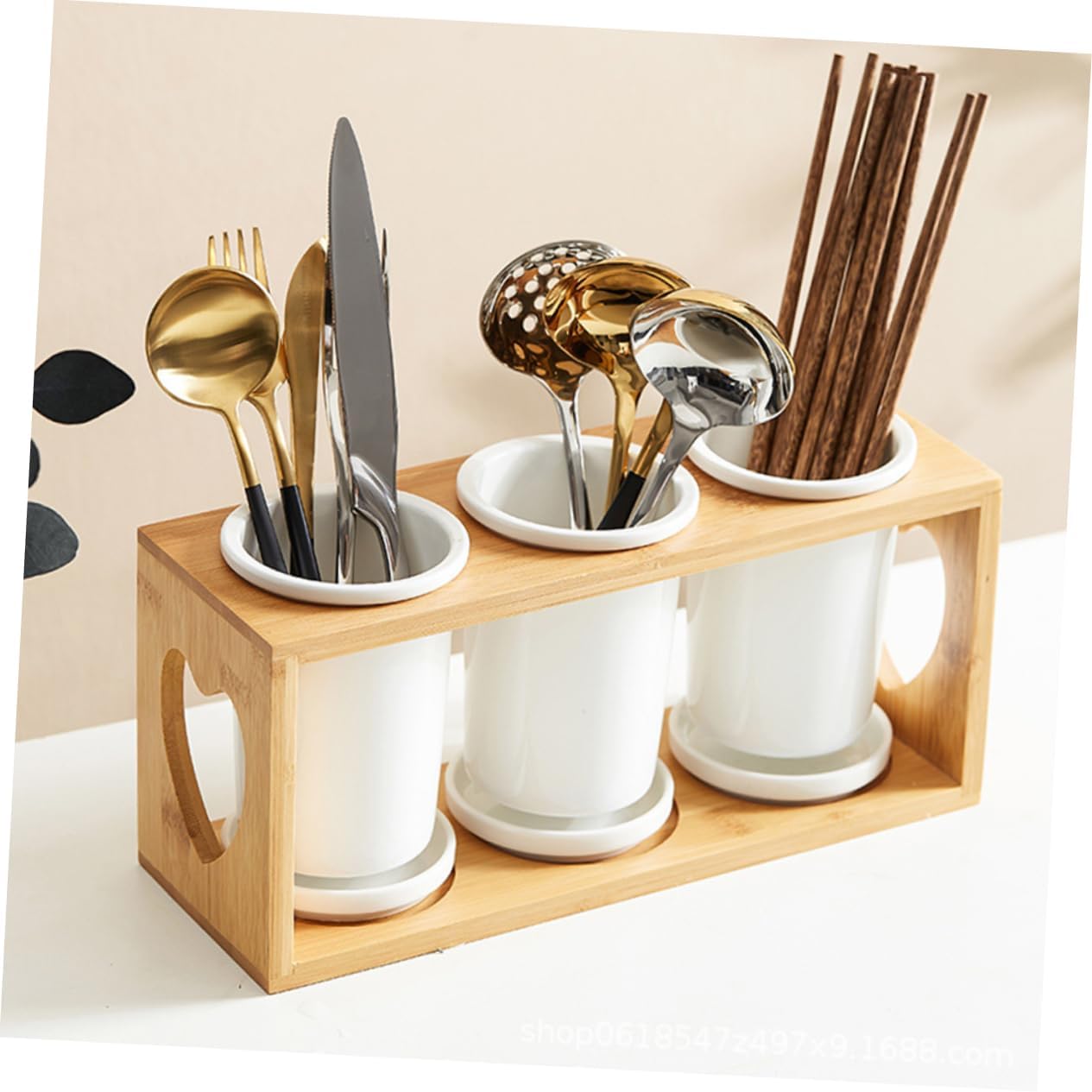 Package List 1 x set of Cutlery Organizer Features - Size: 30.50X14.00X10.50cm/11.99X5.50X4.13in - Material: Ceramics, wood - Selected ceramic and wood material, not easy to deform or break for long serving time - - Simple color and design make it delicate and fashion, easy to match your kitchen styleGoods DescriptionCrafted from ceramic and wood, this utensil holder offers construction that resists deformation and breakage, ensuring lasting use in your kitchen. Its three compartments allow for organized storage of chopsticks, spoons, forks, and other kitchenware, preventing clutter and improving accessibility. The draining design promotes faster drying of utensils by allowing water to escape, helping maintain hygiene and reduce moisture. The holder's simple color and elegant design make it subtle yet fashionable addition to various kitchen styles, blending functionality with aesthetic appeal. Ideal for home kitchens focused on both organization and style, this holder serves as practical container that supports smooth cooking and cleaning processes. Its thoughtful design makes it reliable assistant in everyday meal preparations and dining experiences From Ciieeo was inspired by need for practical and elegant that bring order and style to daily cooking. We focus on combining materials with minimalist design to enhance kitchen organization. Our utensil holders create a neat environment, making meal preparation more enjoyable and efficient. Organize your kitchen with Ciieeo for harmonious cooking space
