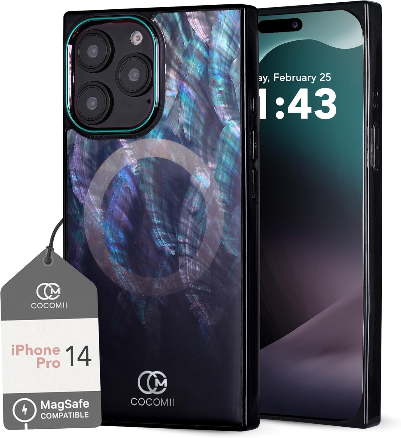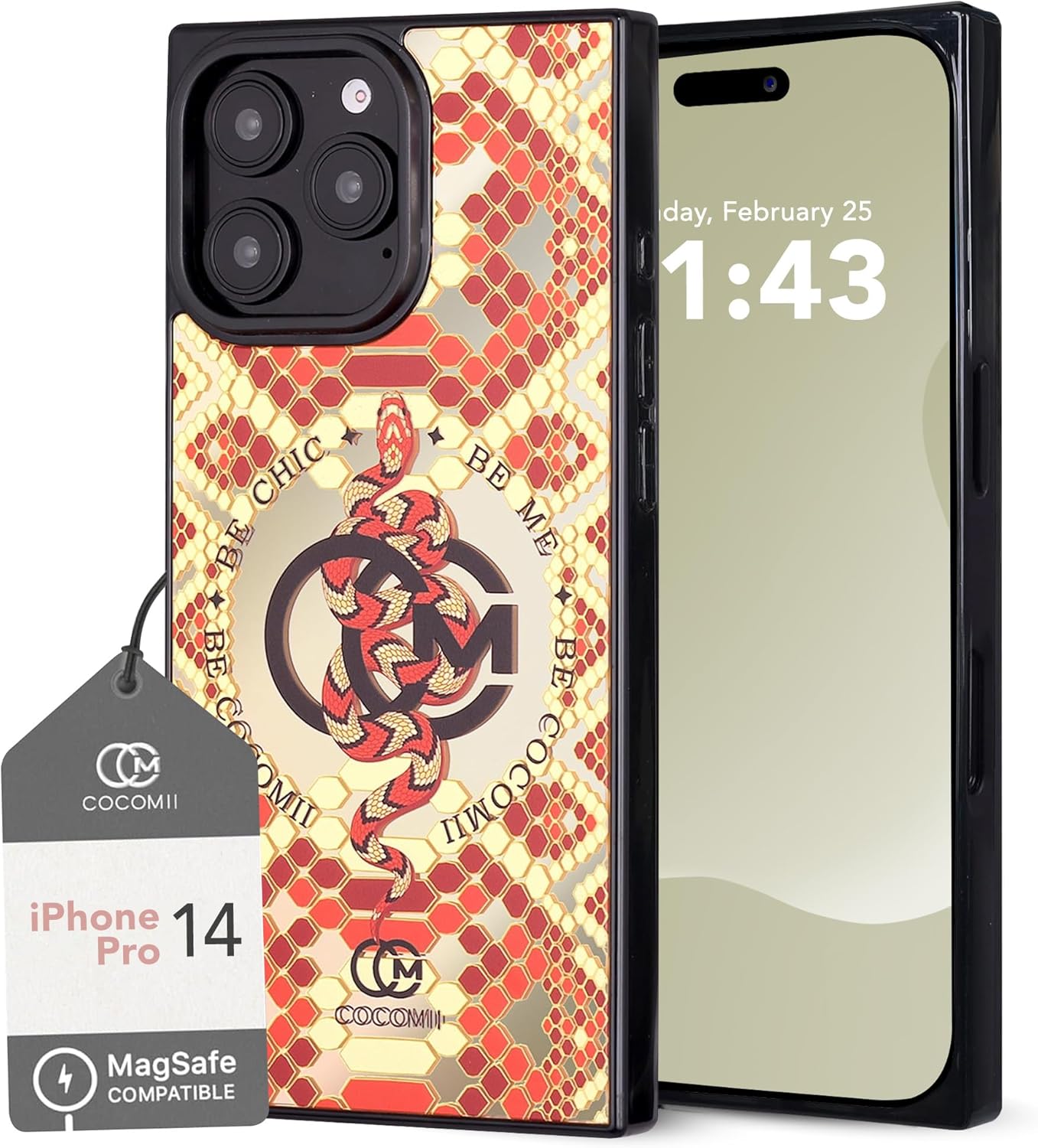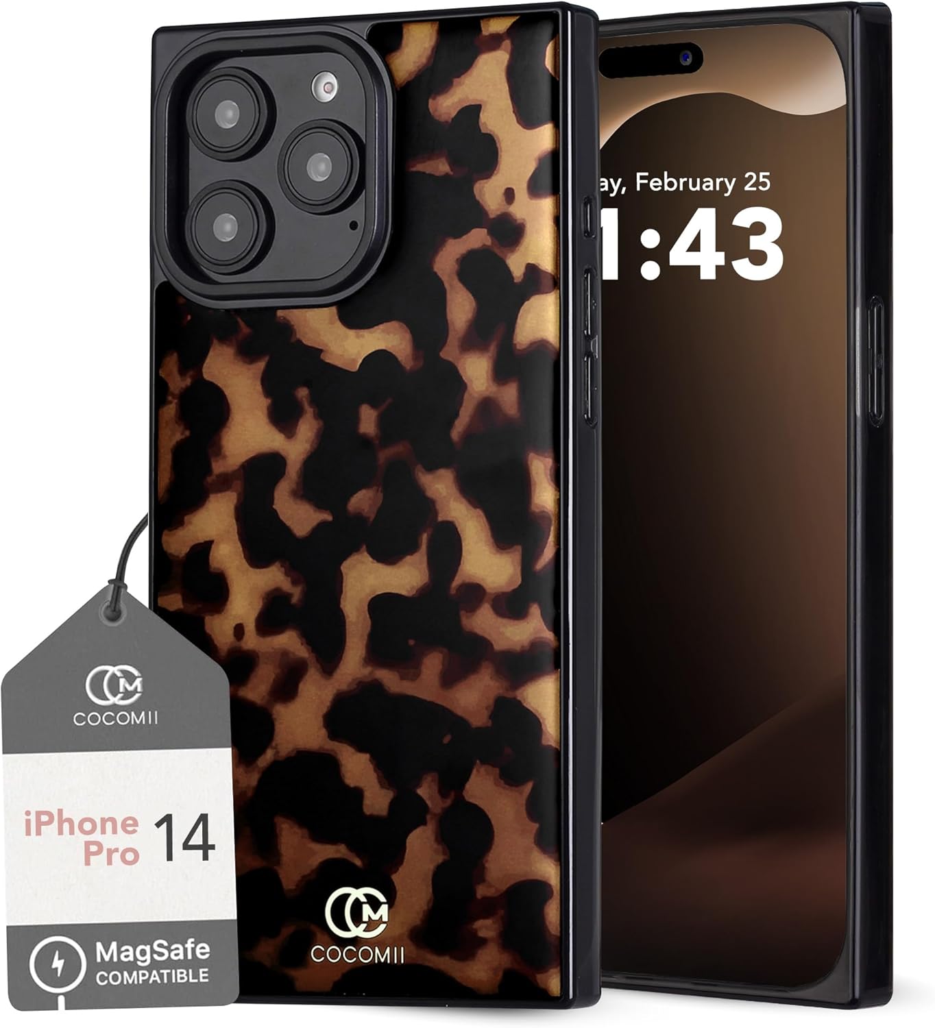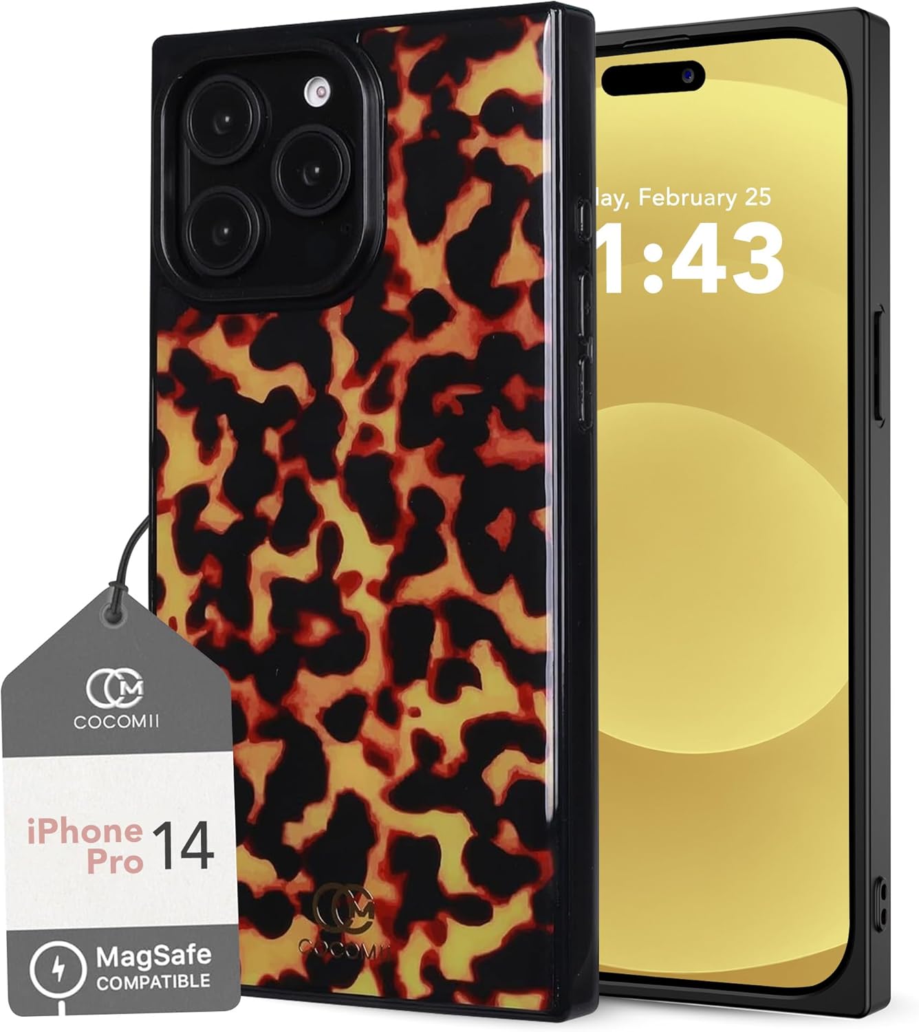 COCOMII Rectangle Case for iPhone 14 Pro Max, Compatible with MagSafe, Amber Tortoiseshell