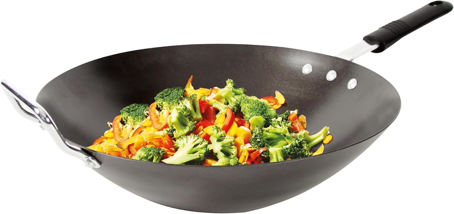 This wok allows you to cook food in a quick and healthy way thanks to its strong non-stick coating and tapered shape. The handle makes it very easy to hold. Perfect for cooking or stir-frying food. Suitable for use on all types of heat source, including induction hobs. Diameter 33cm.