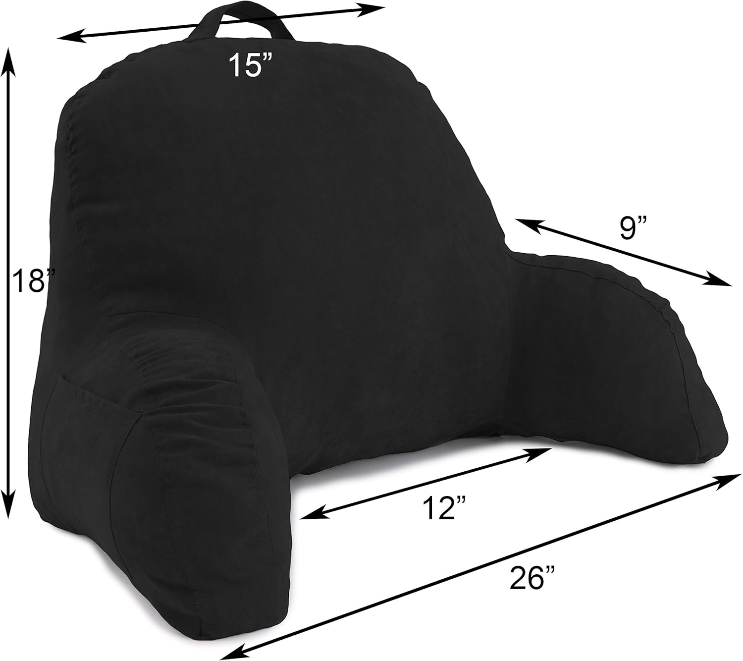 The Microsuede Bedrest Pillow Makes Lounging In Bed a Breeze! Have you been ordered on bed rest following surgery, or some other medical procedure? Maybe you just prefer to spend your spare time lounging in bed, watching movies and reading your favorite novels? Whatever the reason for your extended periods of bed rest, staying in bed for long amounts of time can be a pain, literally. What you need is the Microsuede Bedrest Pillow from Deluxe Comfort. Its firm support helps you sit upright in bed without all the aches and pains you experience with regular pillows. This excellent pillow stands securely on its own, so it won't slouch or fall over when you get up, nor will it topple over when you lean back on it. The "arms" of this pillow are long and thick, providing an even more stable base. The perfect plushness of these arms is just right to rest your arms while reading or watching television. The Microsuede Bedrest Pillow is both a functional and aesthetically-pleasing solution to all your bed rest woes. The smooth cover is both soothing to the touch and easy to clean. It is available in ten different colors, so you should have no problem finding the one you like. The large width of this pillow makes it ideal for all body types. Beat the Bed Rest Blues and ORDER TODAY!