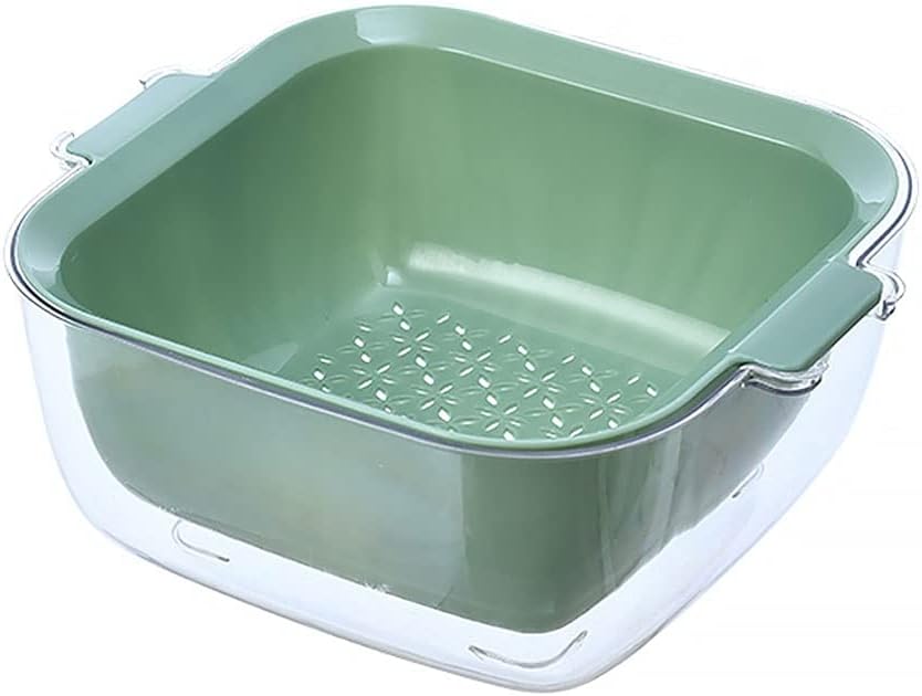 Product name: Drain basket for kithcen food Product material: PlasticColors: Green,Blue,Yellow,three colors for your chioce.Plastic washing basket Occasion: Very suitable for kitchen, living room, bathroomPackage contents: 1*2 in 1 detachable strainer basket Tips:1. Please note that due to the influence of light and screen, slight chromatic aberration is acceptable. Thank you!2. Please confirm the size and color before buying3. Product photos do not include products other than products4. Please allow 2-3% difference according to manual measurement, please refer to the actual product, thank you!5. Welcome to share and feedback, we can provide you with better products and services.6. If the product has any quality problems, please feel free to contact us via email, we will solve the problem for you as soon as possible.It makes the countertop storage more convenient and neat, and keeps your dishes away from water drops, it is your perfect kitchen utensils。
