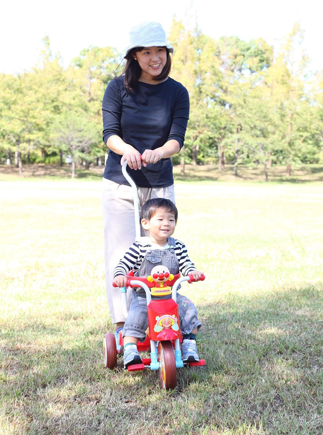 The main unit is foldable, so it is convenient to carry and store. Crisp mechanism allows you to control the direction of the handle with a push bar. Safety guard to prevent dropping Foot step included The front wheel button operation allows the pedal to be freely rotated without interacting with the front wheel. Squeeze the handle to make it pop! Pooh! Ringing Anpanman Air Horn Comes with a front basket for convenient on-the-go. (From Amazon.co.jp)