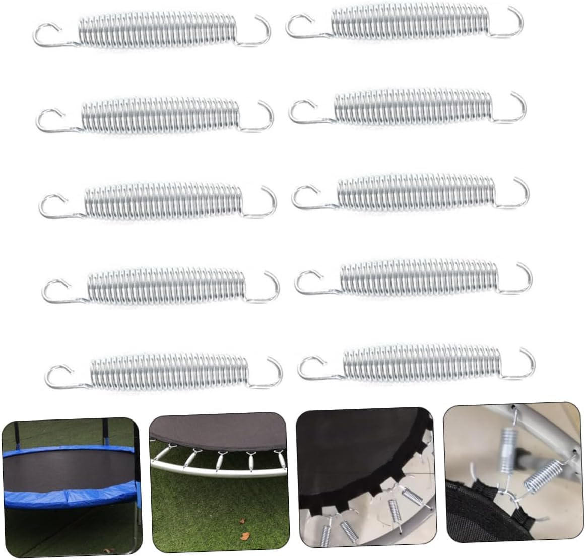 Package Include 10 x springs Features -Material: Galvanized steel wire Sturdy Spring for Trampoline - Although its design is simple, it is so when you use it Extension Spring. - Provides extra durability for the right amount of tension, finish for extra protection against harmful and Trampoline Spring. - Strong load-bearing capacity, strong, wear- , -proof, to deform and break Professional Trampoline Spring. - The trampoline replacement spring is made of high-end zinc-coated wire material. and for a long term use Trampoline Supplies. - It can be used to replace your old or broken trampoline spring, which is and Trampoline Accessories.Goods InformationTrampoline Accessories The spring helps to provide bounce and comfort, and reduces the pressure caused by the impact, which can make your trampoline more stable.Outdoor Trampoline Spring Heavy-duty sturdy structure and coating to provide weather resistance.Compressed Spring It is easy to set up and remove