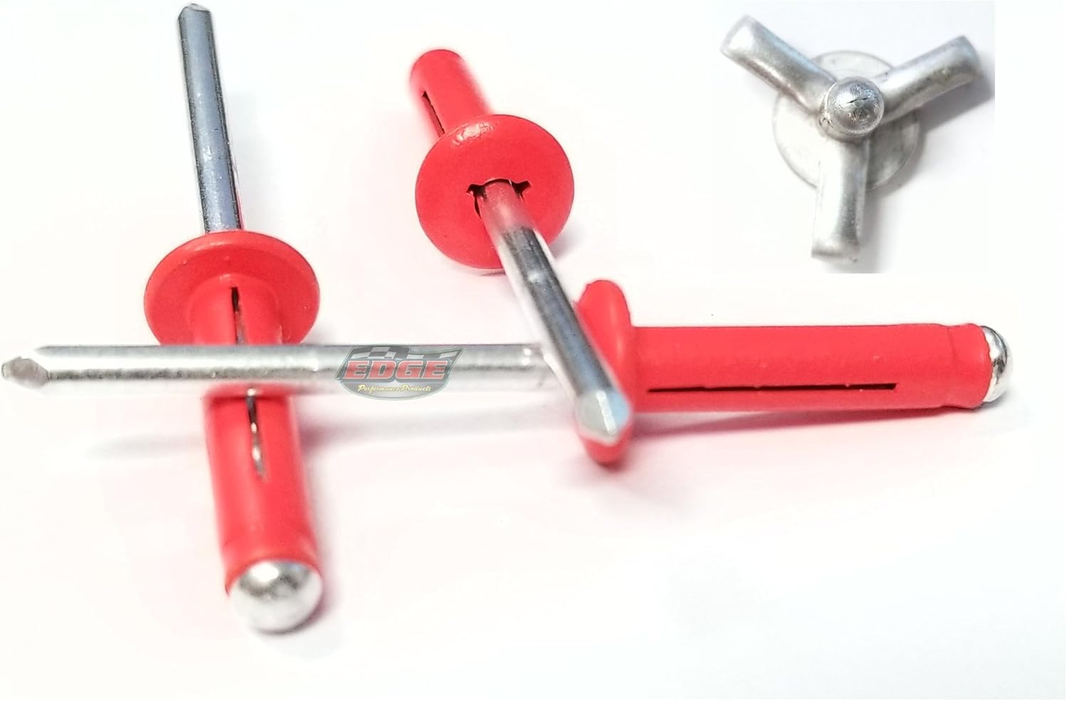 Perfect for inconsistent grip ranges or oversize out-of-round holes that are typical in plastics. Edge Performance Tri-fold rivet is designedto work like a moly-bolt in that it splits out into three legs at the backside. Its extended bearing surface spreads the load over a wider area to prevent pullout in plastics or other similar soft or thin sheet materials. This Tri-fold Rivet is a real time saver for many repair jobs and only requires one person. Unlike standard pop rivets, these 'blind' rivets do not require a backup washer. 1.) Works in over-sized, oblong and worn out holes up to 1/4″ 2.) Tight clamp-up and holding power, from .040″ to .354″ with stronger clamping power. 3.) NO back-up washer needed. The Tri-fold action will clamp without needing a back up washer. 4.) These rivets will work with any functioning blind rivet setting tool.