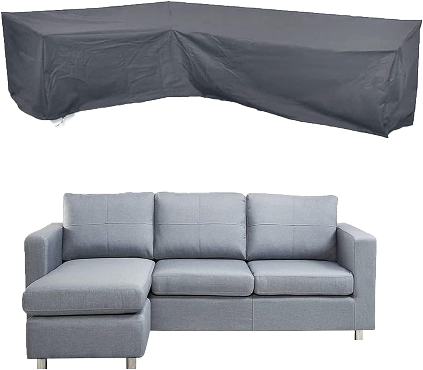 Material: thicken 420D polyester Color: black, grey Size: Left L shaped: 106 x 79” /270 x 200 cm Right L shaped: 79 x 106” /200 x 270 cm V shaped: 106 x 106 x 35.5” /270 x 270 x 90 cm V shaped: 84 x 84” /215 x 215 cm V shaped: 118 x 118” /300 x 300 cm Left L shaped: 112 x 87” /286 x 222 cm Right L shaped: 87 x 112” /222 x 286 cm Patio sectional furniture is NOT included. Please Note: 1. Please allow 1-2cm differences due to manual measurement, a slightly larger size than your stuff is advised. 2.Due to the difference of light and screen , the item's color may be slightly different from the pictures. 3.Please confirm the size before purchase. 4.Contact with us and let us know if any problem, thanks for any help.