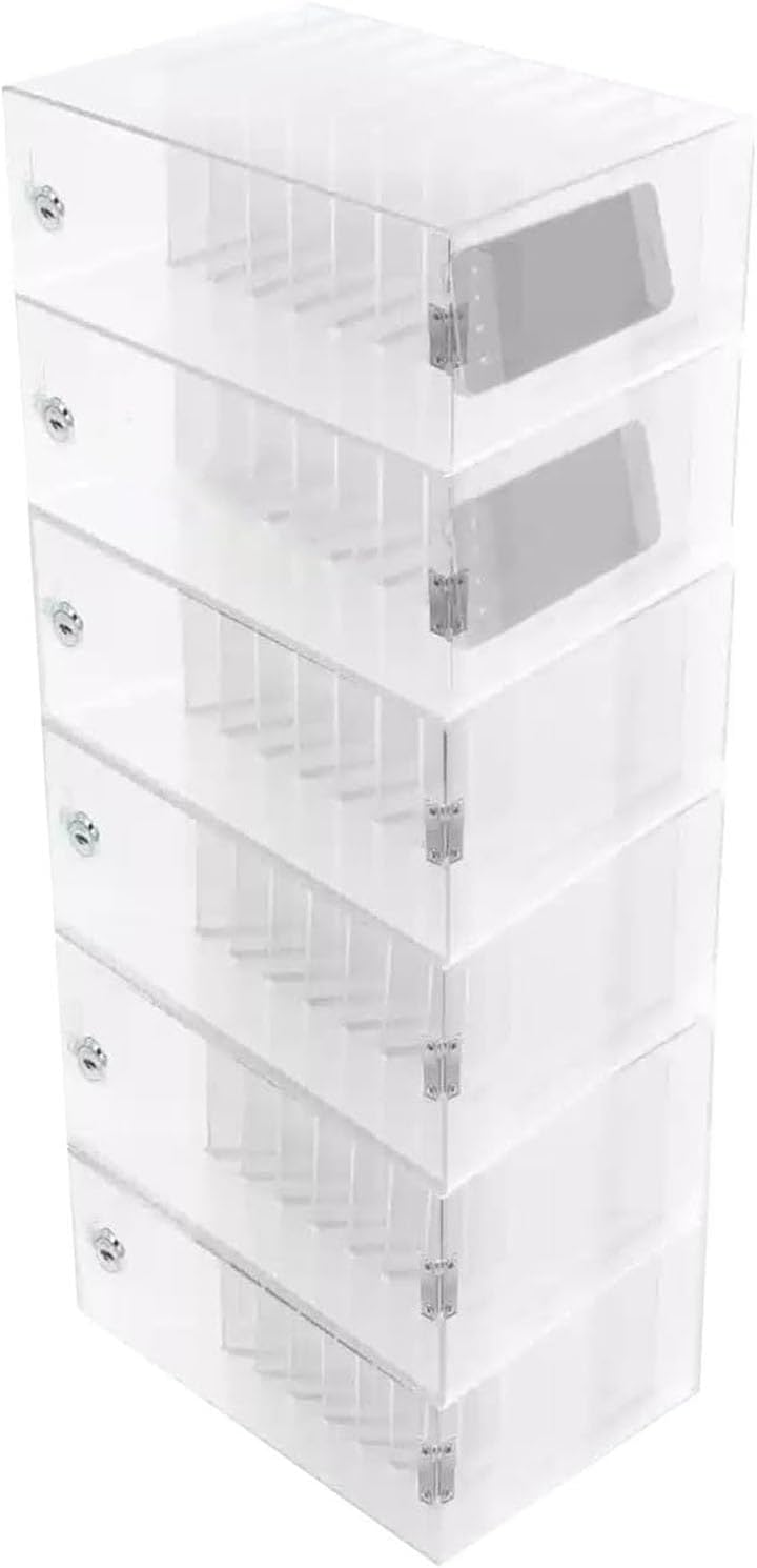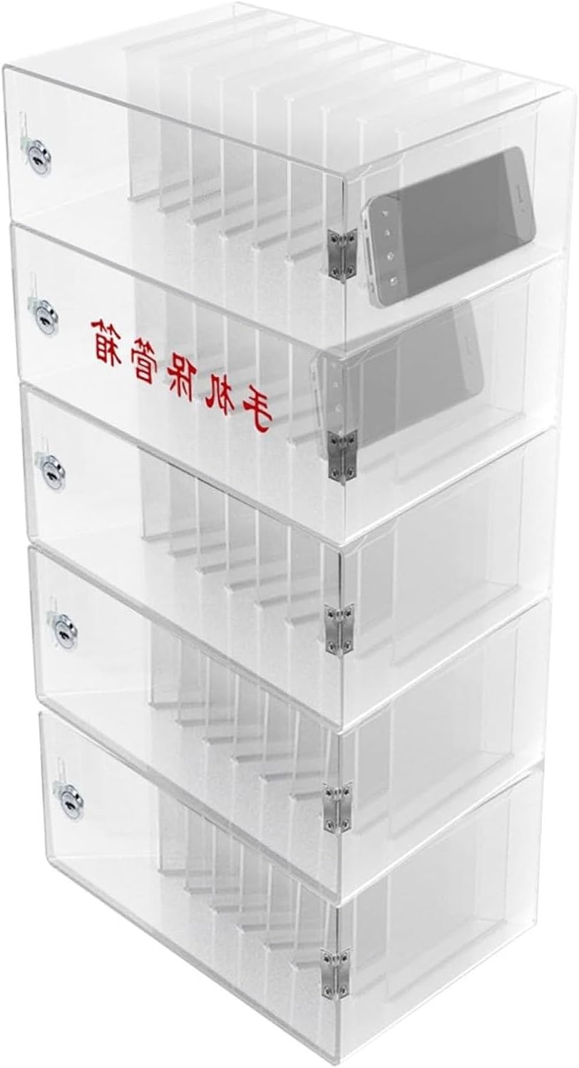 JKGHK classroom desk organizer is easy to use and can be placed on the table or hung on the wall , can also be stacked.The mobile phone storage box can not only hold mobile phones, but also keys, wallets, cards and other small items. It is big enough you can store different types of mobile phones.Product Name: Cell Phone Storage/Phone Locker Box/Phone Storage Box/Phones Storage Cabinet/Pocket Mobile Phone Storage CabinetMaterial: AcrylicStyle: ModernColor: ClearNumbers of Slots: Floor 1 , Floor 2 , Floor 3 , Floor 4 , Floor 5 , Floor 6Mounting Type: Wall Mount, FreestandingApplicable Places: Schools, classrooms, conference offices, factories, restaurantsPackage Contents:Cell Phone Storage Box × 1 (Does not include other items shown in the pictures)Notice:1. Due to manual measurement, please allow 1-3 cm error.2. Due to factors such as light and display, the actual item received may be different from the picture. Please refer to the actual product.3. We only have Cell Phone Lock Box, other products are only used as scene props for reference.