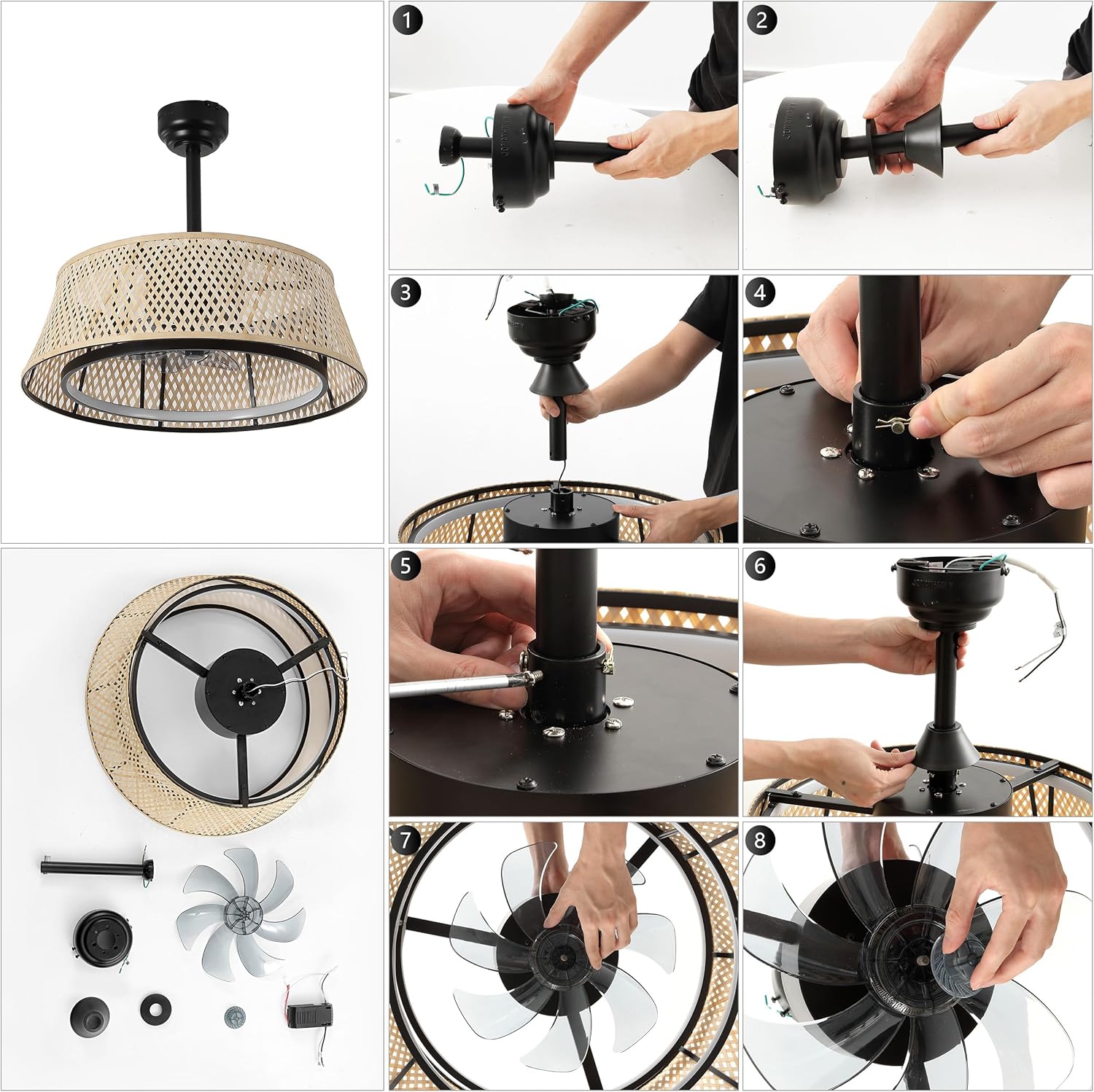 Our combination semi-flush mount and ceiling fan conceals its 7 fan blades inside a coastal-inspired woven bamboo shade. This traditional design includes two integrated LED ring lights with 3 color changing options and 6 fan speeds; all in which can be controlled via an on/off wall switch, remote control, or the JONATHAN Y mobile-app. Safer for kids' rooms, our LED ceiling fans are the perfect addition to the bedroom, living room, or office.