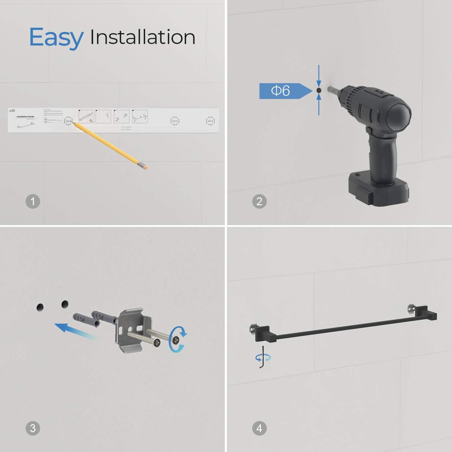 • [BOX INCLUDES]: 1 Toilet Paper Holder, 1 Towel Holder, 1 Towel Bar, and 1 Robe Hook