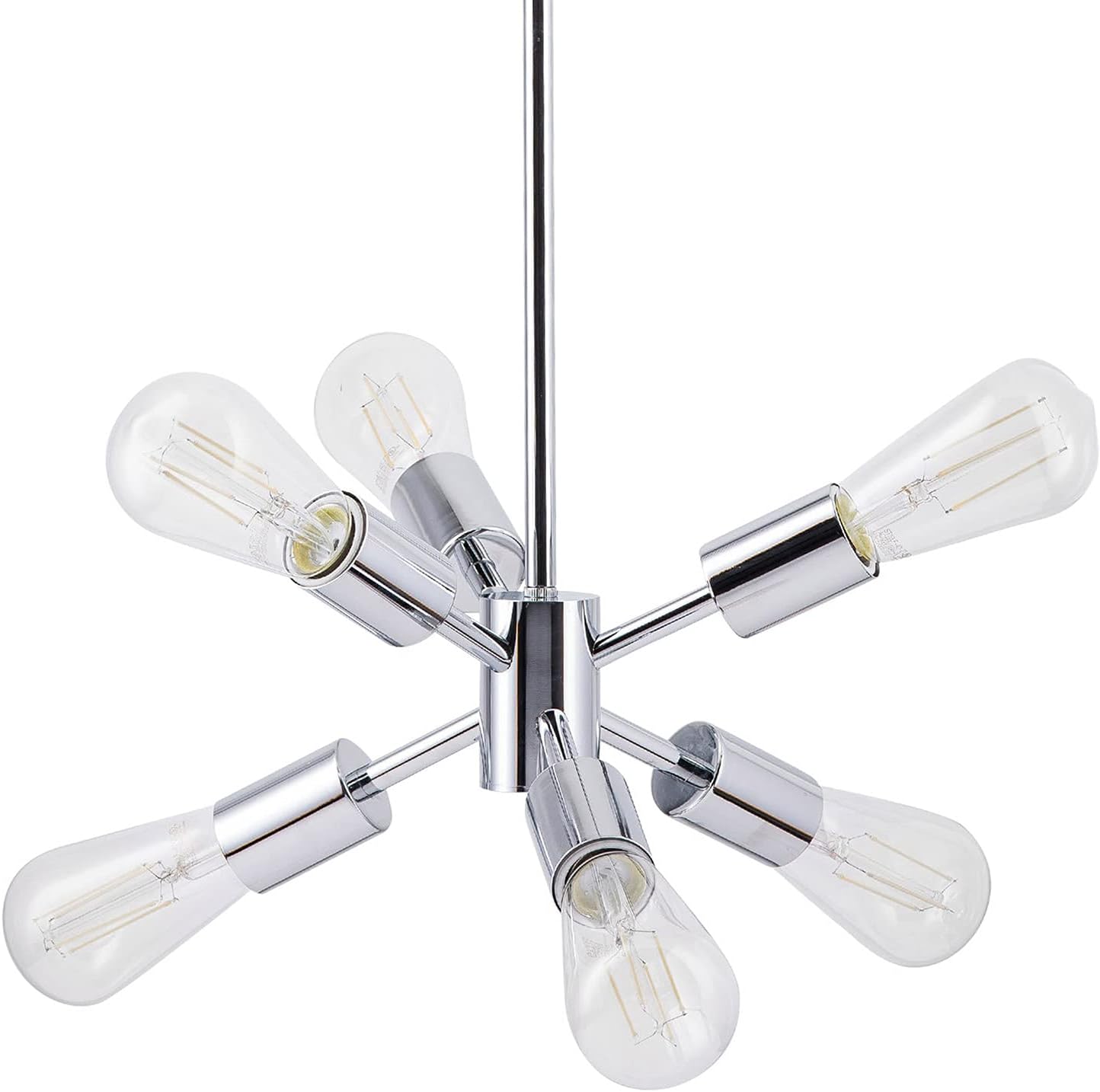 | Included Components | Medium sputnik modern light fixtures, threaded rods, tilting swivel canopy, six 4W 400 lumen, LED filament Edison-style bulbs |
