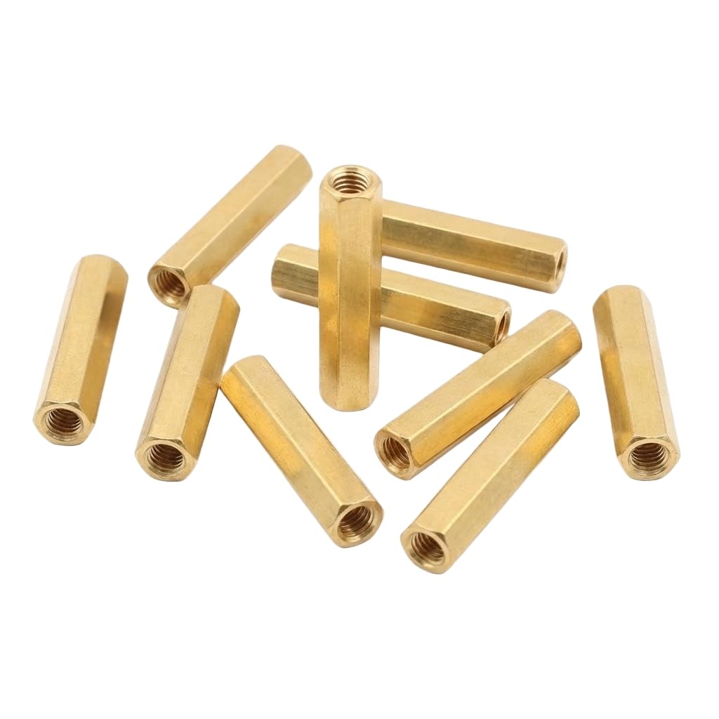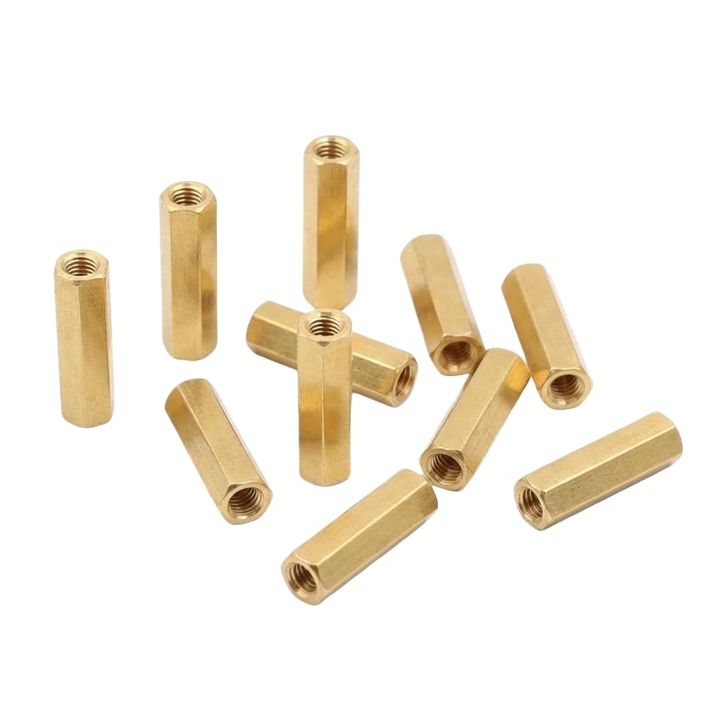 M3 x 10mm Brass Straight PCB Pillar Material: Brass Color: Brass Thread Size: M3 Male to Female Application: Suitable for communication, electroplating, medical equipment, office equipment, electronic products. It can be installed with nut retainer or other wrench device.When longer sizes are required, pressure riveting nut columns are usually chosen rather than gaskets. Package Included: 100pcs M3 *10 mm spacer screws