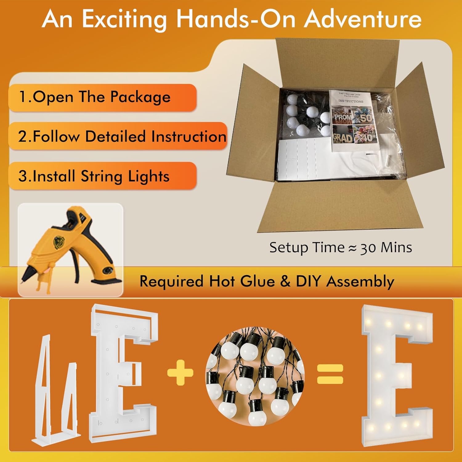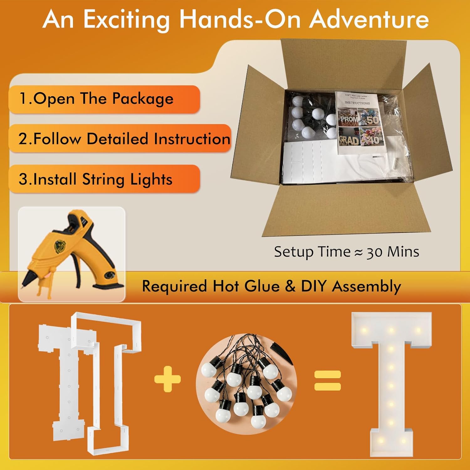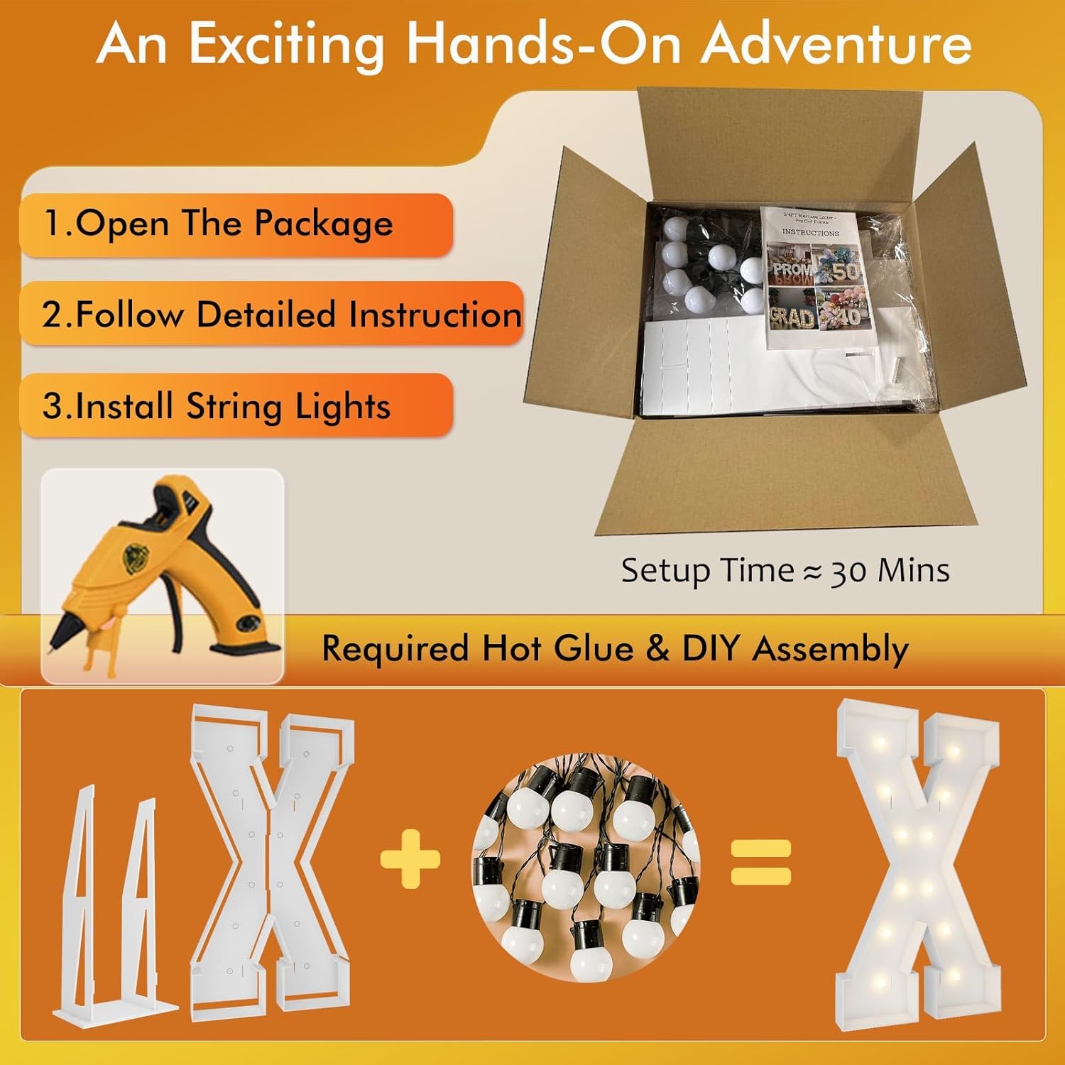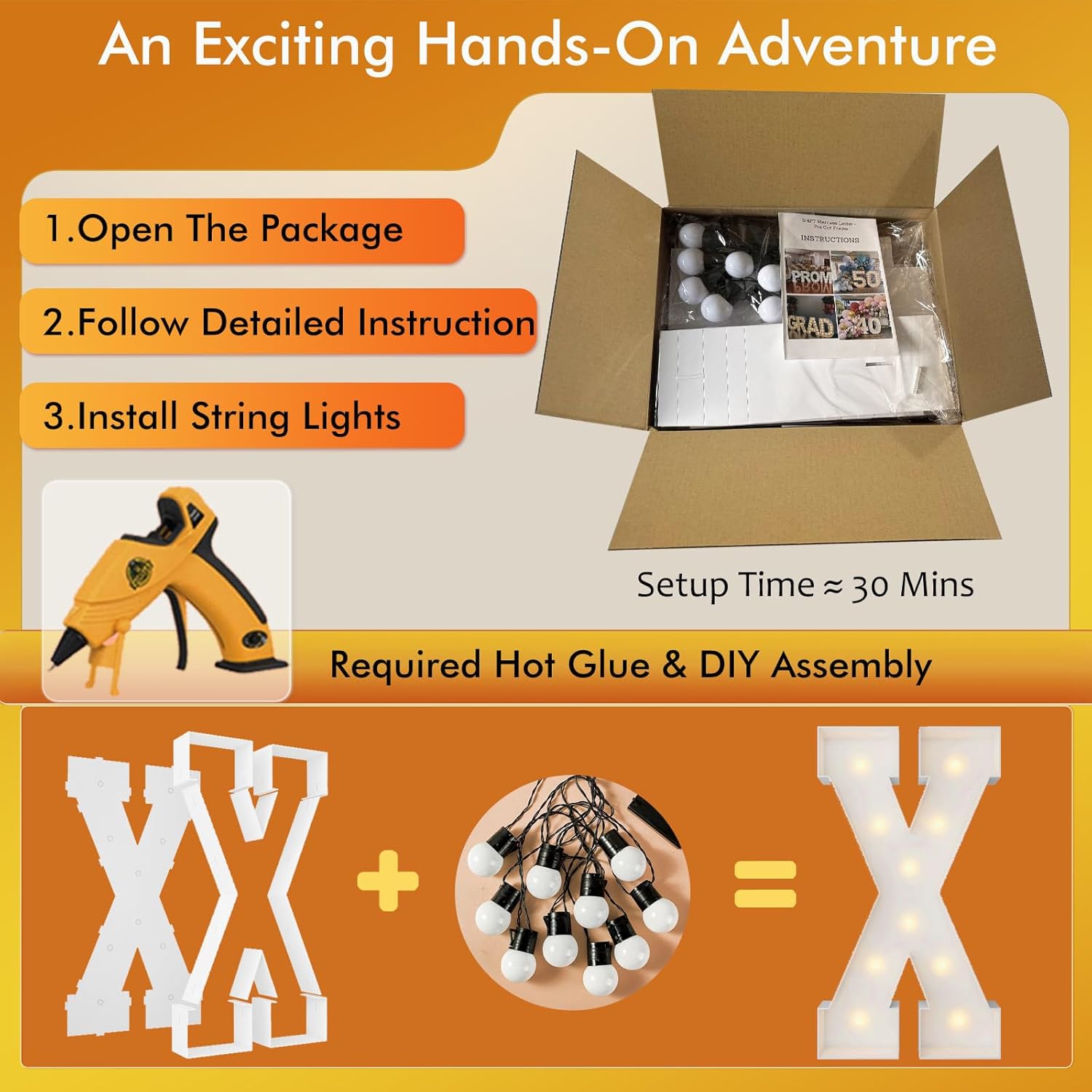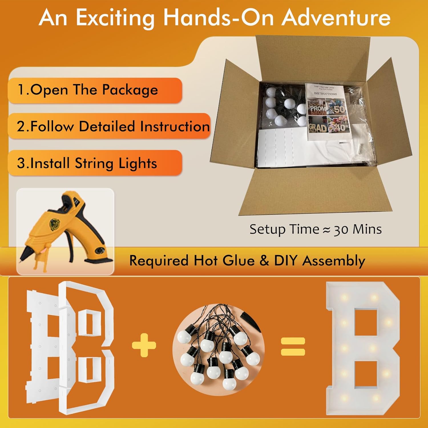 | Included Components | 12 Bulbs String Lights, Double-sided tape, Instruction, Marquee Letter Cut Out Kit |