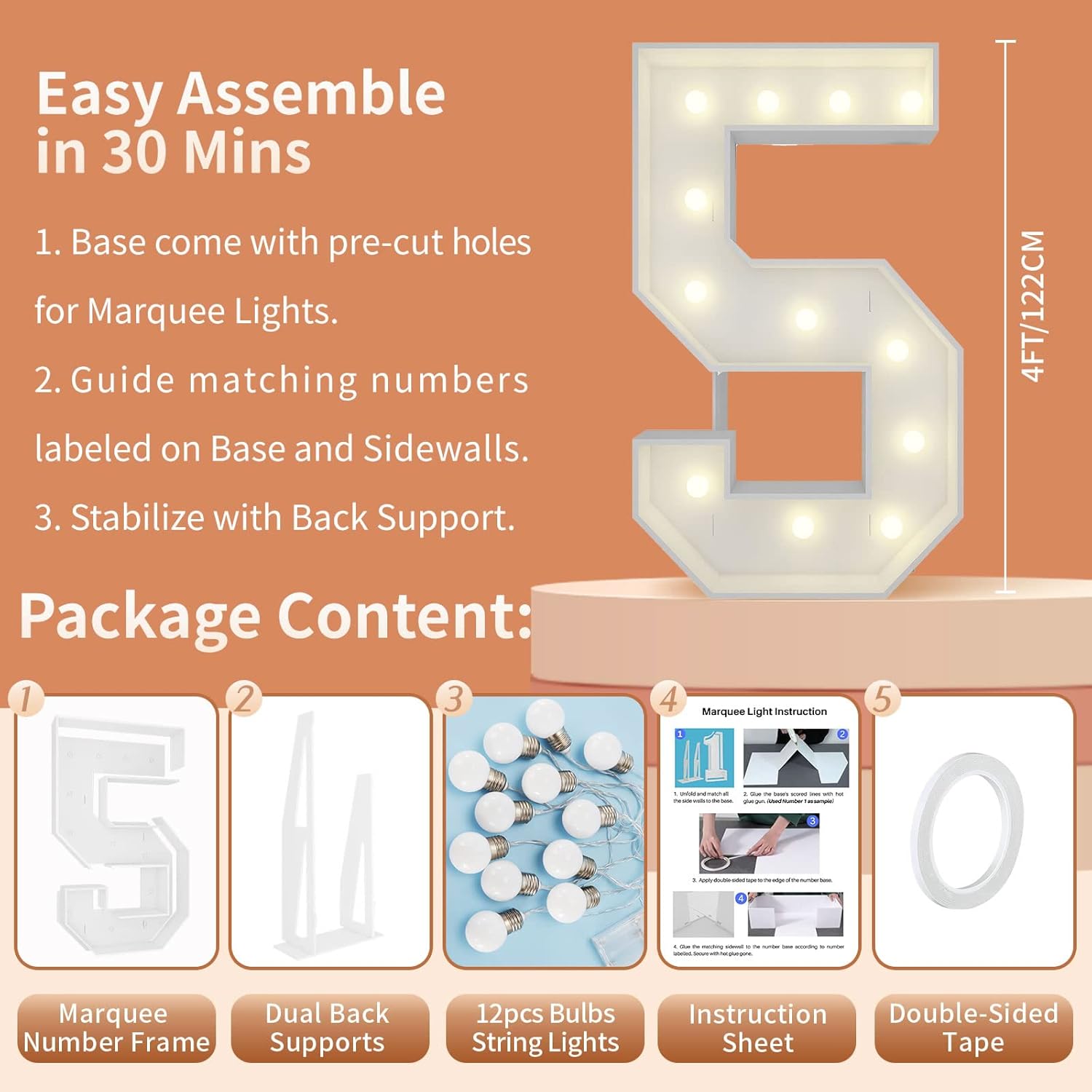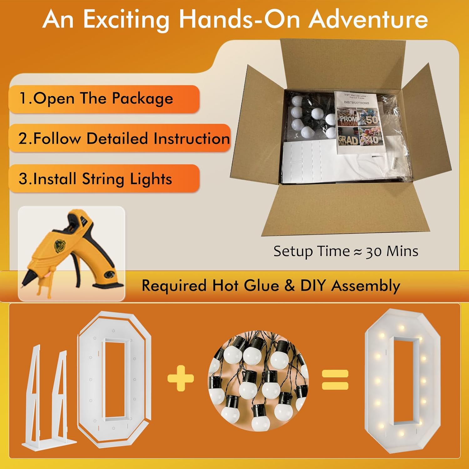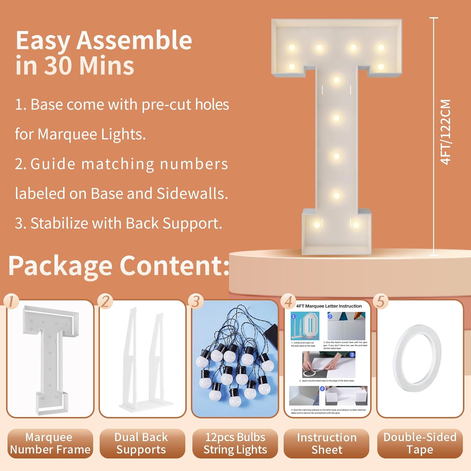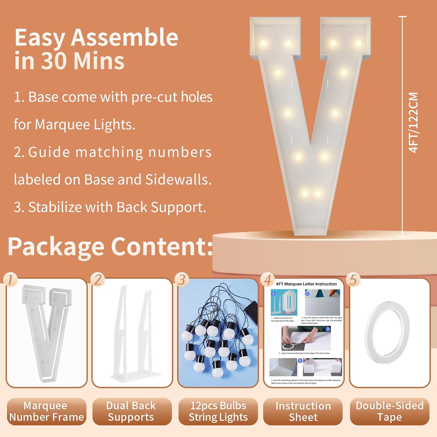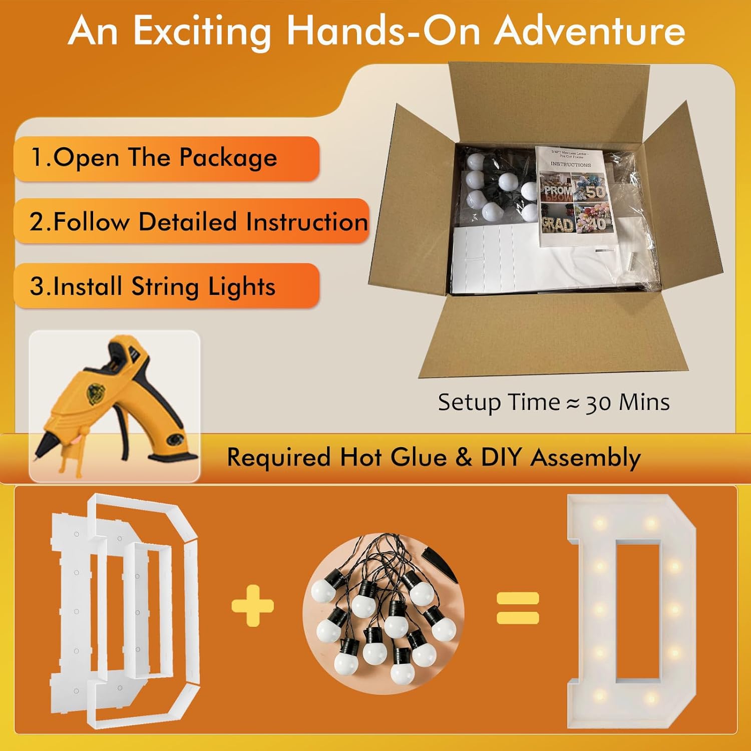 | Included Components | 12 Bulbs String Lights, Double-sided tape, Instruction, Marquee Letter Cut Out Kit |
