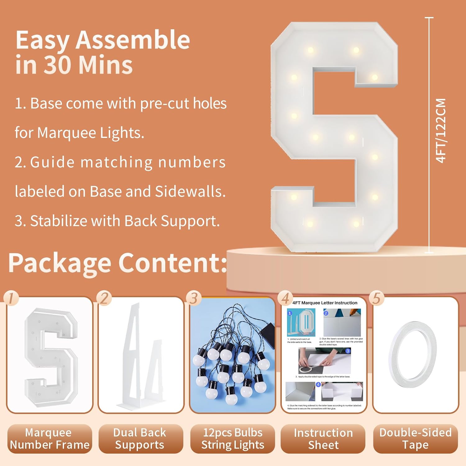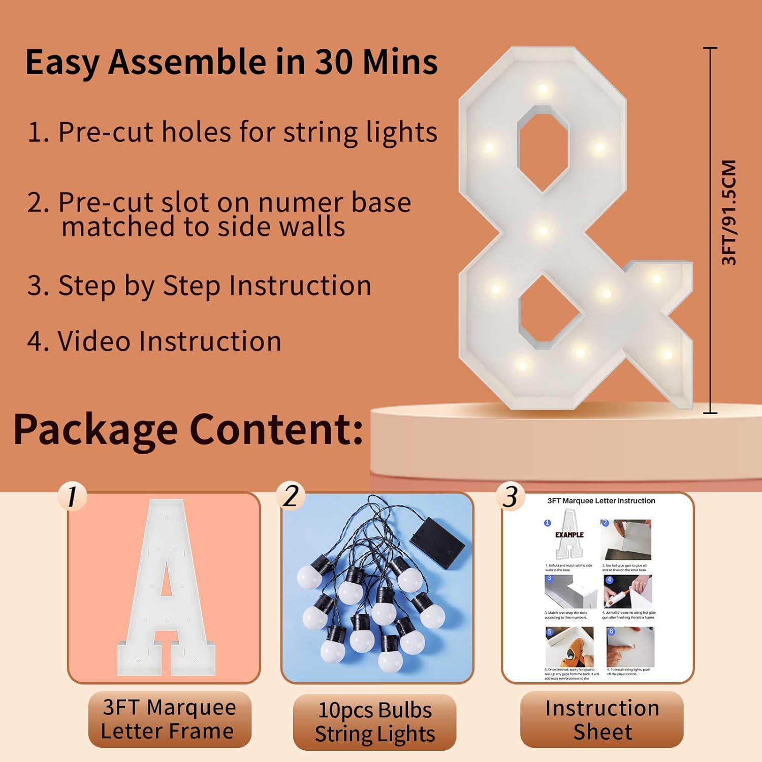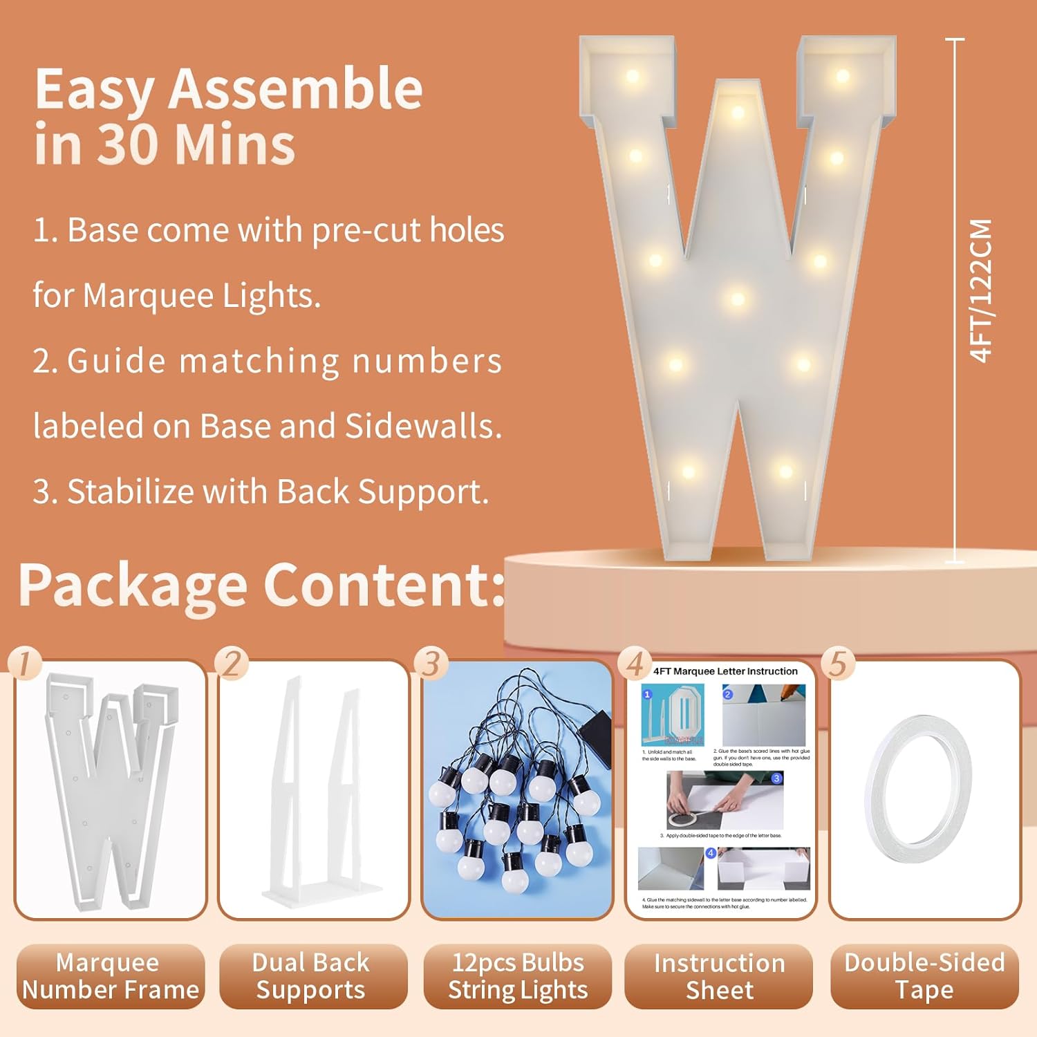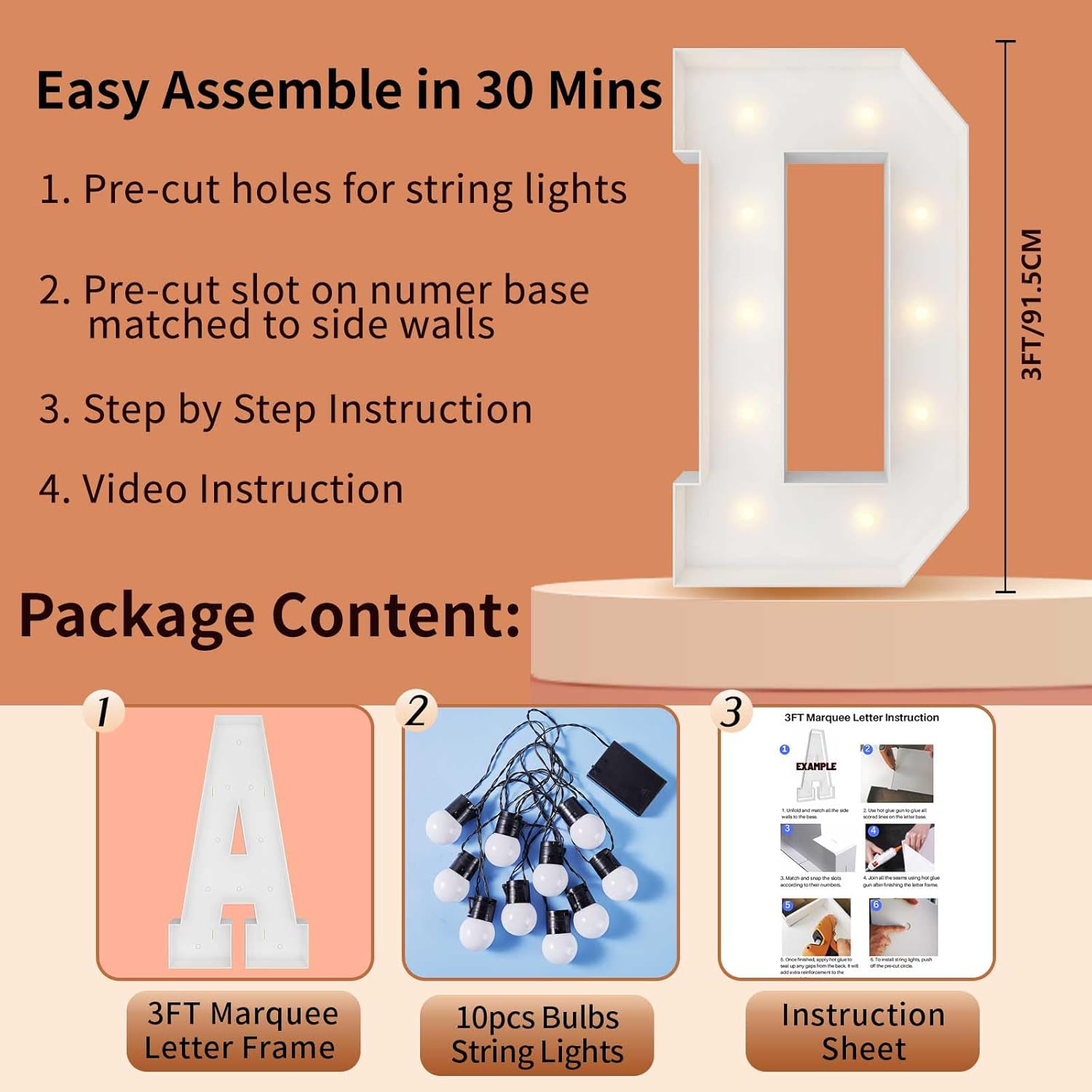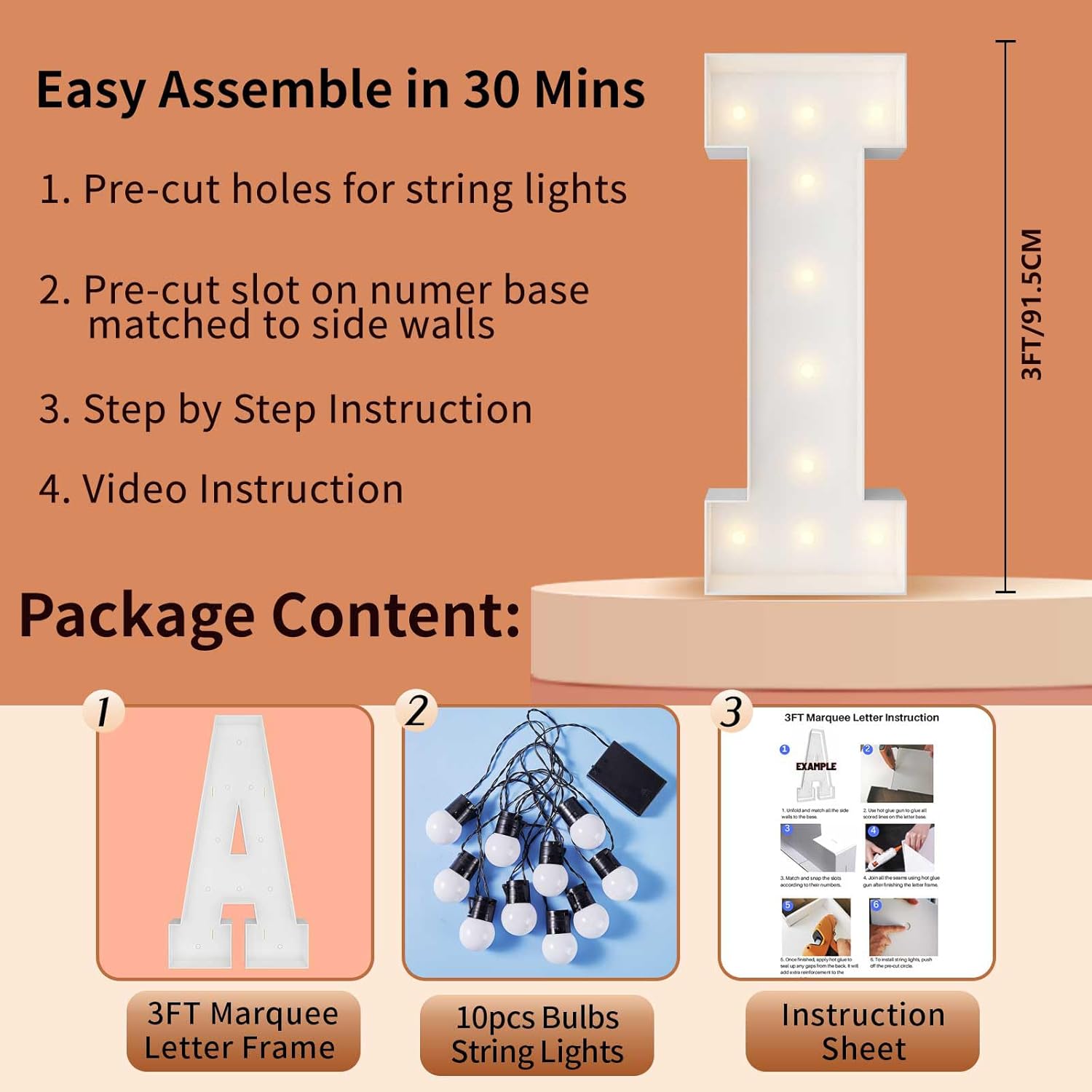 | Included Components | 12 Bulbs String Lights, Double-sided tape, Instruction, Marquee Letter Cut Out Kit |