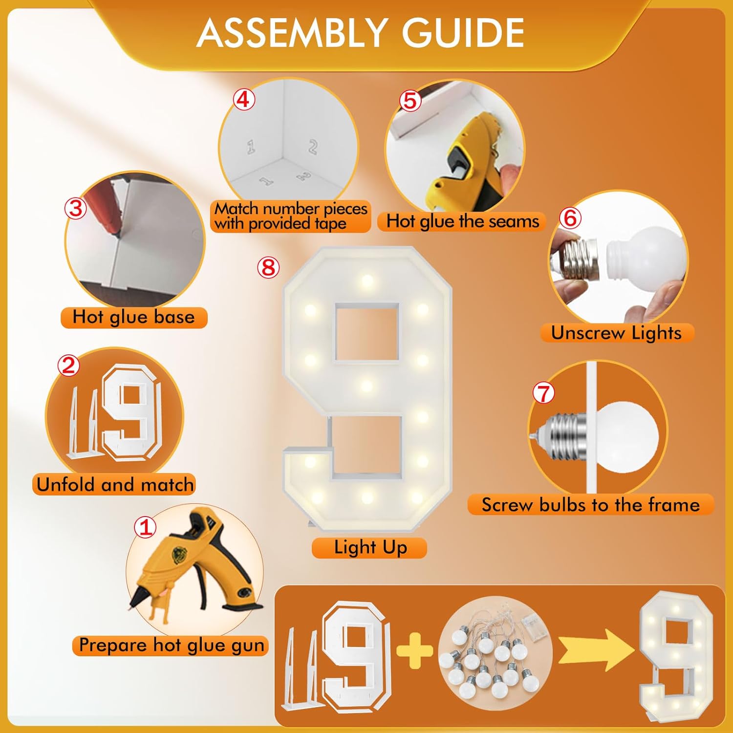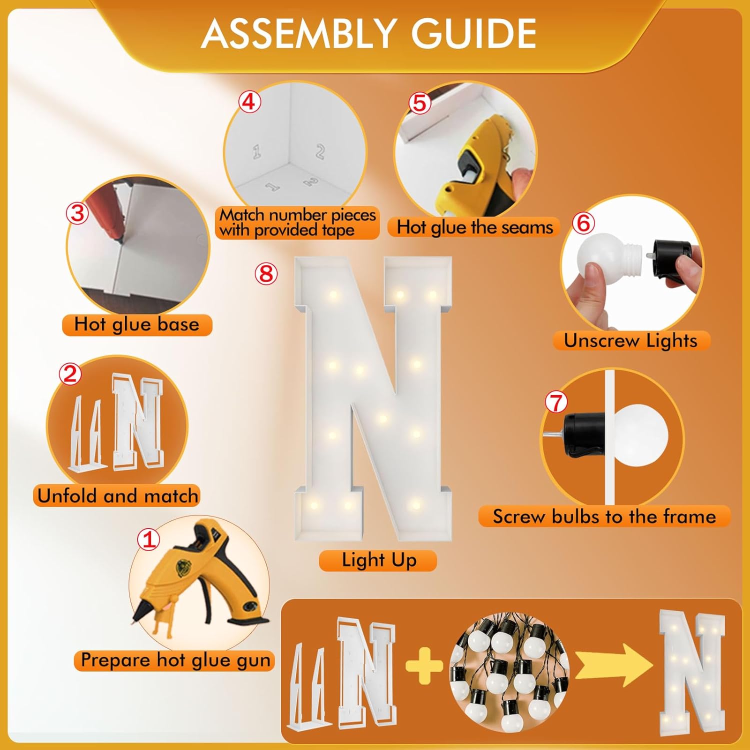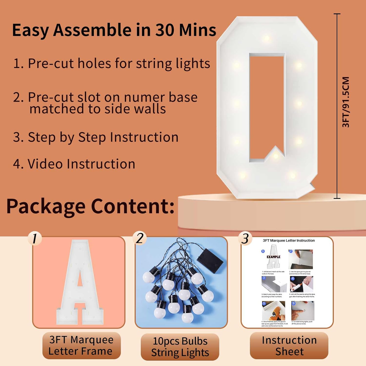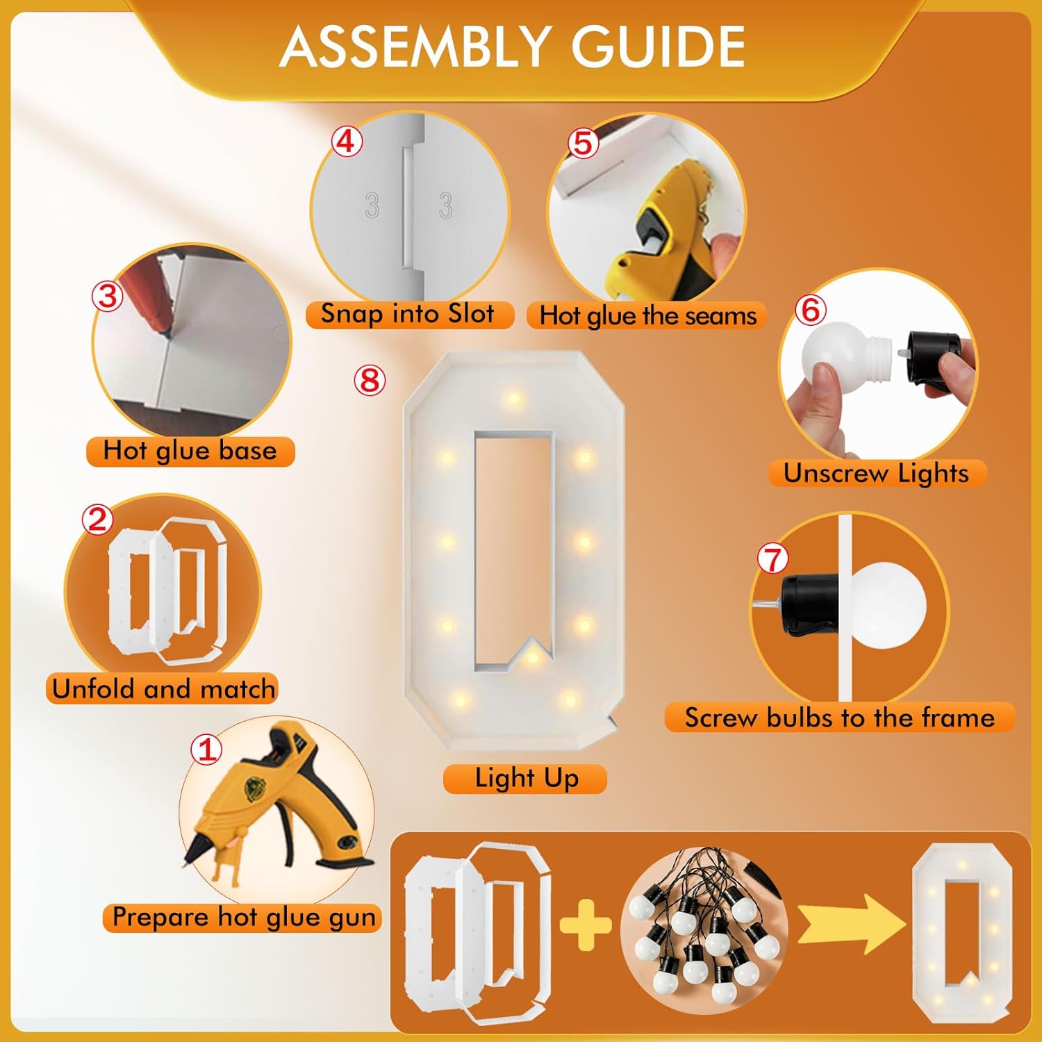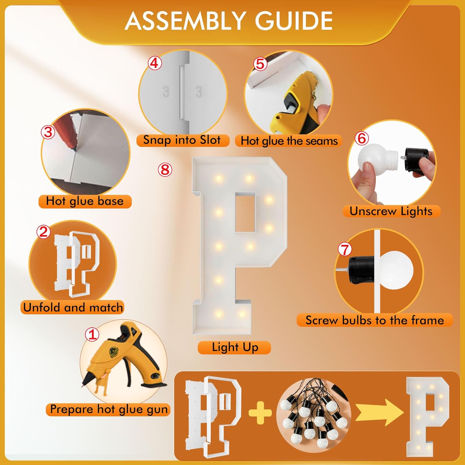 | Included Components | 12 Bulbs String Lights, Double-sided tape, Instruction, Marquee Letter Cut Out Kit |