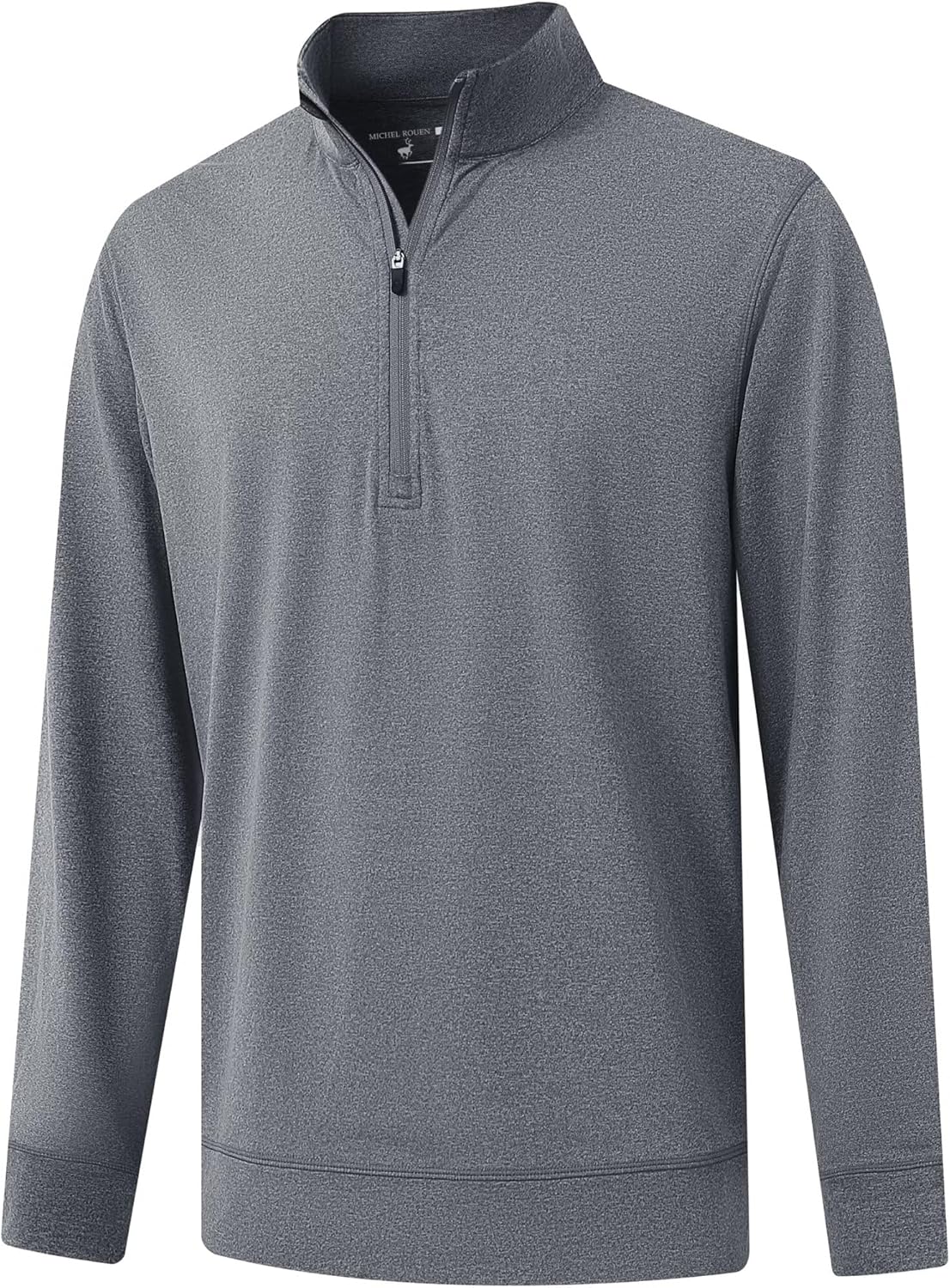 MICHEL ROUEN Quarter Zip Pullover Men Lightweight Dry Fit Mock Neck Midlayer Soft Sport 1/4 Zip Pullover Mens Heather Sweater