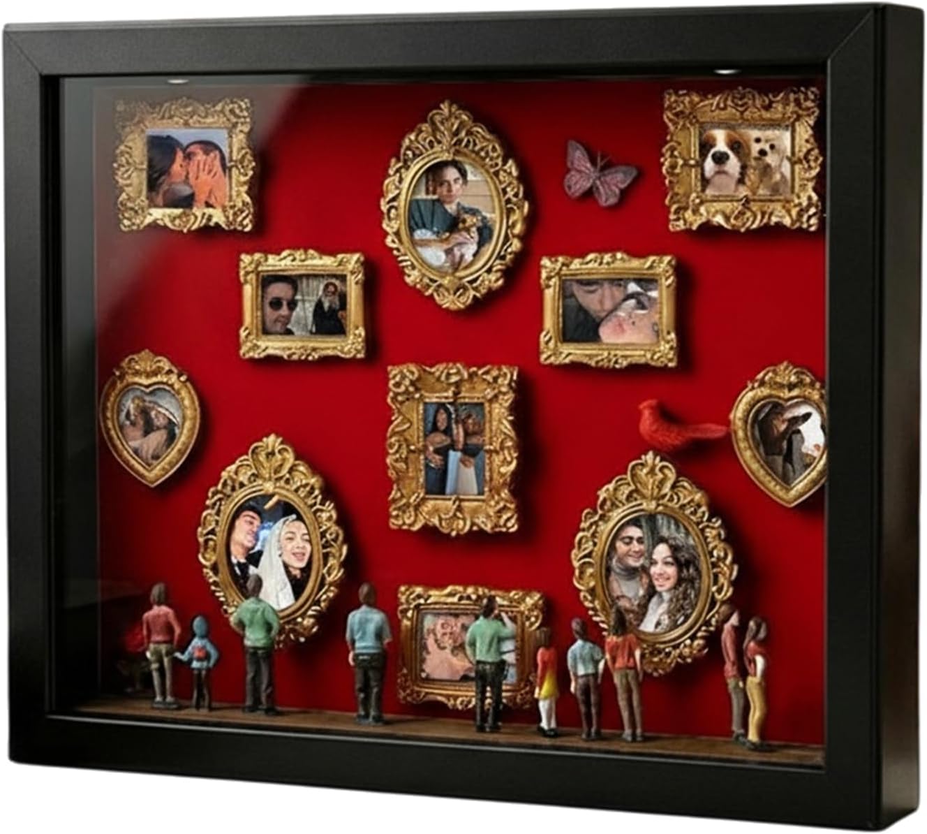 Silhouette Box Miniature Museums with Figurines are designed to light up your space while creating fun and cherished memories. This DIY Memory Display Kit allows you to craft a distinctive decorative piece, perfect for couples, lovers, family, friends, or as a sincere gift for her, him, wife, or husband. Each box serves as both memory decor and a creative display, ideal for showcasing meaningful moments. Whether celebrating relationships or personal milestones, this miniature museum brings joy and sentimental value to any setting. Engage in the delightful process of assembling and illuminating your creation, adding warmth and personality to your home or office. Silhouette Box Miniature Museums inspire connection, creativity, and lasting memories.SpecificationProduct Name: DIY Mini Museum BoxMaterial: woodSize: 31.4*22.7*3.7cm/12.36*8.93*1.45 inchesWeight: 440gPacking size: 33*25*5cm/12.99*9.05*1.97 inPacking weight: 560gColor: white, black with red, wood with greenListDIY Mini Museum Silhouette Box x1Mini photo frames x10Mini figurines x8Note:1. Due to lighting effects and display angles, there may be color differences in the product.2. Due to manual measurement, there may be errors in product size, please understand.