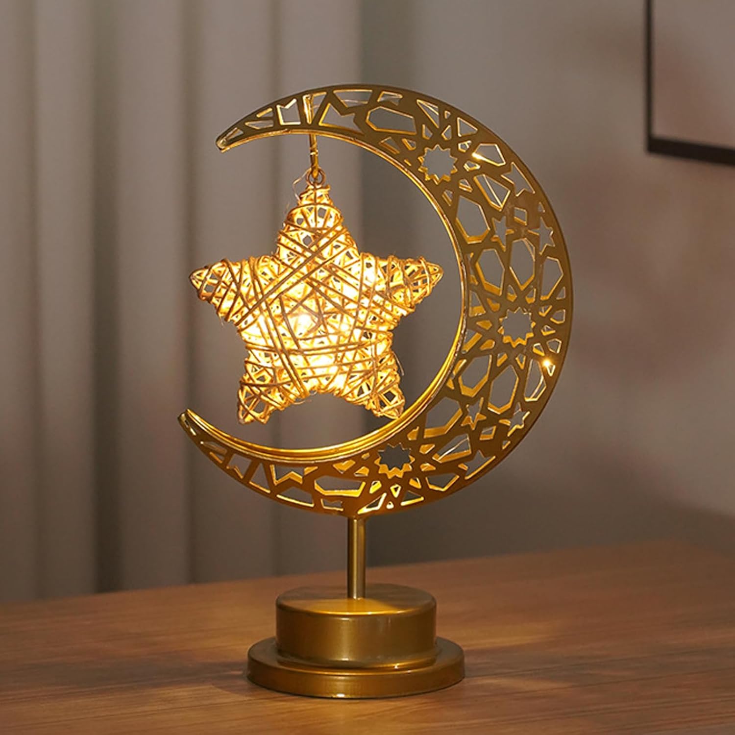 Exquisite Hollow Moon Design: This unique moon lamp features a delicate hollow moon shape, serving as a charming moon night light that enhances Ramadan decorations with warm, festive glow in bedroom, home, or kitchen.Product Name: moon lampHeight: 10.6in(27cm)Power supply: AA battery poweredPackage includes:1Pcs moon lampNote:1. Due to manual measurement, there may be slight differences in size. Please refer to the actual product for details.2. Due to monitor and lighting differences, the actual color of the product may vary slightly. Please refer to the actual product for details.3. If you have any questions, please feel free to contact us. We’re here to help and will respond within 24 hours.