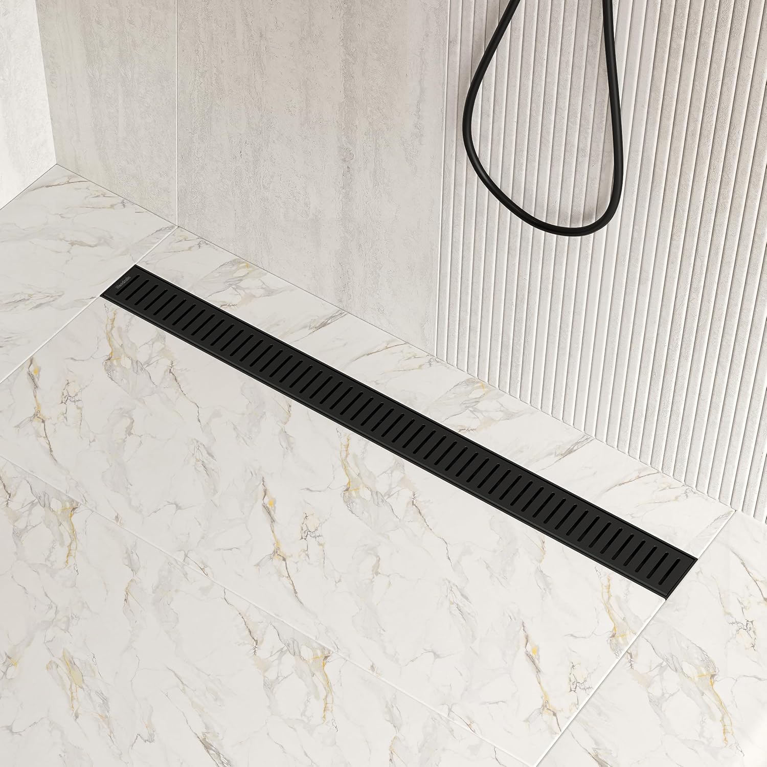 Neodrain 36 in Matte Black Linear Shower Drain with Removable Capsule Pattern Grate, 304 Stainless Steel Rectangle Shower Floor Drain, Linear Drain with Adjustable Leveling Feet,Hair Strainer
