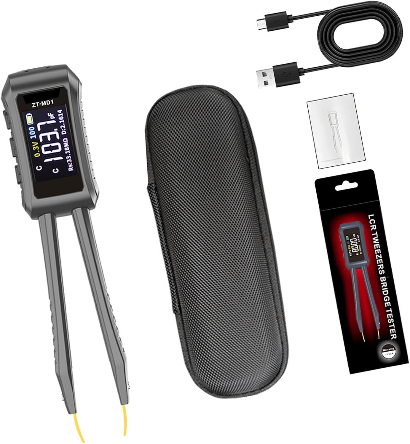 Portable Digital Tweezer Tester Diode Tester Measurement Tools Professional Meter Tweezer Clear DisplayFeatures:The Digital Tweezer Tester high precisions measurements, supporting a wide ranges of parameters including resistance, capacitance, and inductance, making it a essential tool for accurate electronic testing.Featuring a portable design with a easy to operate interfaces, this tester includes a clear display for clear and data reading, enhancing usability in various testing scenario.Ideal for professional electronic engineers, technicians, laboratory researcher, and electronics enthusiasts, this tweezer is to meet the needs of those who require precise measurement tool.Perfectly suited for use in research laboratories, electronic product repairs, educational demonstrations, and circuit development testing environment, providing versatilities across multiple applications.Constructed from ensures reliability, making it a choices for anyone involved in detailed electronic analysis and troubleshooting tasks.Specifications:Component: Resistance 10mΩ-10MΩInductance: 1μH-60HFrequency: 100Hz-10KHz AdjustableCapacitance: 1pF-20mFBattery Capacity: 400mAAuto Power Off: YESDiode Measurement: YESSize: About. 146mm/5.74inPattern: A/B/CPackage Includes:1 Set Digital TweezerNote:Please allow 1-2cm errors due to manual measurement. Due to difference between different monitors, the picture may not reflect the item actual color.