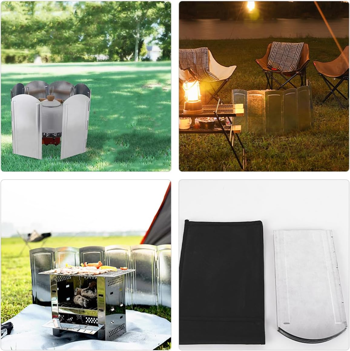 • Camping stove windscreen:the stove windshield can be folded, can be removed as much you want and easy to carry,camping windscreen