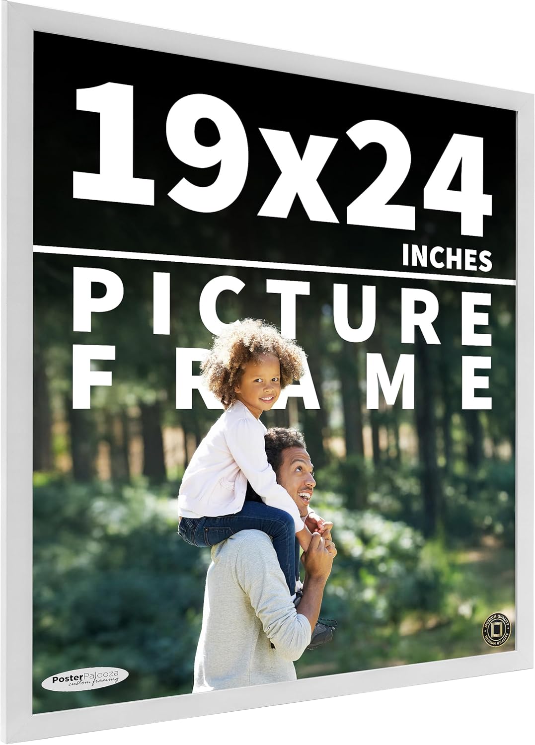 19x24 Contemporary Black Wood Picture Frame - UV Acrylic, Foam Board Backing, & Hanging Hardware Included.. This Wood Picture Frame has been built for images measuring 19x24 Inches.. Overall dimensions 19.5625x24.5625 Inches.. Moulding Width: 0.5625 Inches - Rabbet Depth: 3/8 Inches. UV Resistant Frame Grade Acrylic Sheet & Foam Board Backing Included.. Hanging hardware is included but not installed—easily attach for vertical or horizontal display.