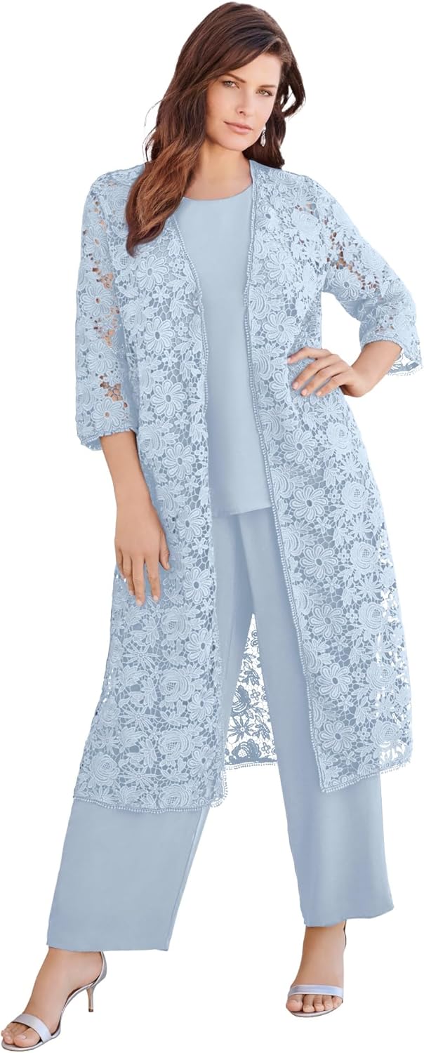 | Style Name | Plus Size 3-piece Allover Lace Duster Pant Set – Formal Wear |