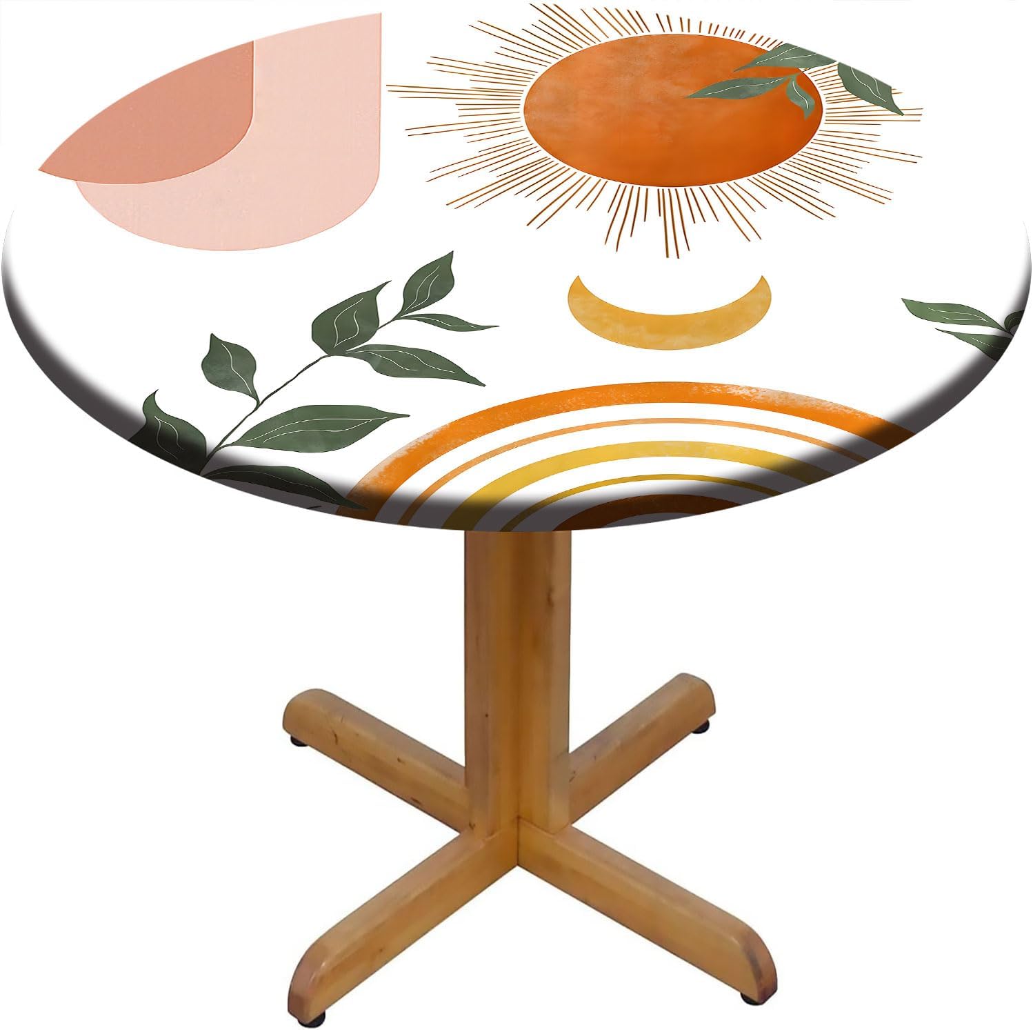 Round Fitted Tablecloths, Circular Elastic Edged Table Covers 100% of the lid edges are sewn with elasticity to ensure that the lid stays on your table and prevents the tablecloth from slipping or falling off. In addition, polyester tablecloths are durable and easy to wipe clean.The polyester tablecloth has bright colors and exquisite graphic design, providing your dining table with a new stylish appearance and preventing scratches and liquid spills. It will help you prevent dirt and dust on the outdoor terrace table.Great tablecloth for indoor and outdoor use; tablecloth has a seamless one piece design.Tablecloth is great for picnics,BBQ's,parties, dinners, restaurants, potlucks, everyday and more.Great for decorating your table.Perfect Size for Your 44" Round/Circle Table The tablecloth diameter is 52"Tablecloth - Fit for 44" TablePackage Included:1 Round tableclothNotes:1.Due to manual measurement, please allow a difference of 1-3cm.2. Due to different displays and different lights, the picture may not reflect the actual color of the item. Thank you for your understanding.Creates a wonderful and luxurious setting for your family and friends to enjoy together.Protects your table from stains and damages. Easy care, easy clean-up. Stain prevention, water resistant and oil-proof."