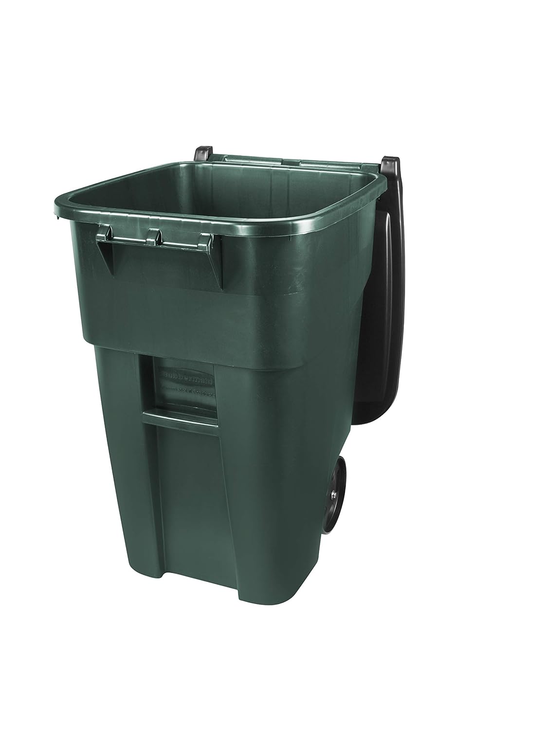 The Rubbermaid Commercial BRUTE Rollout Trash/Recycling Can with Hinged Lid is the industry leader in waste and material handling applications. These seamless rectangular bins are constructed of durable polyethylene with a hinged lid, integrated handle, and inset wheels. Heavy-duty polyethylene weighs less than aluminum or steel and resists cracking. The hinged lid open fully and locks against the trash/recycling bins. A molded-in axle retainer adds strength while inset wheels make the bin maneuverable and help prevent damage to walls and doorways. A molded-in catch bar makes the trash/recycle bins compatible with automated and semi-automated lift systems for curbside garbage and recycling collection. This trash/recycle bin contains an ultraviolet (UV) stabilizer to help prevent fading and discoloring.