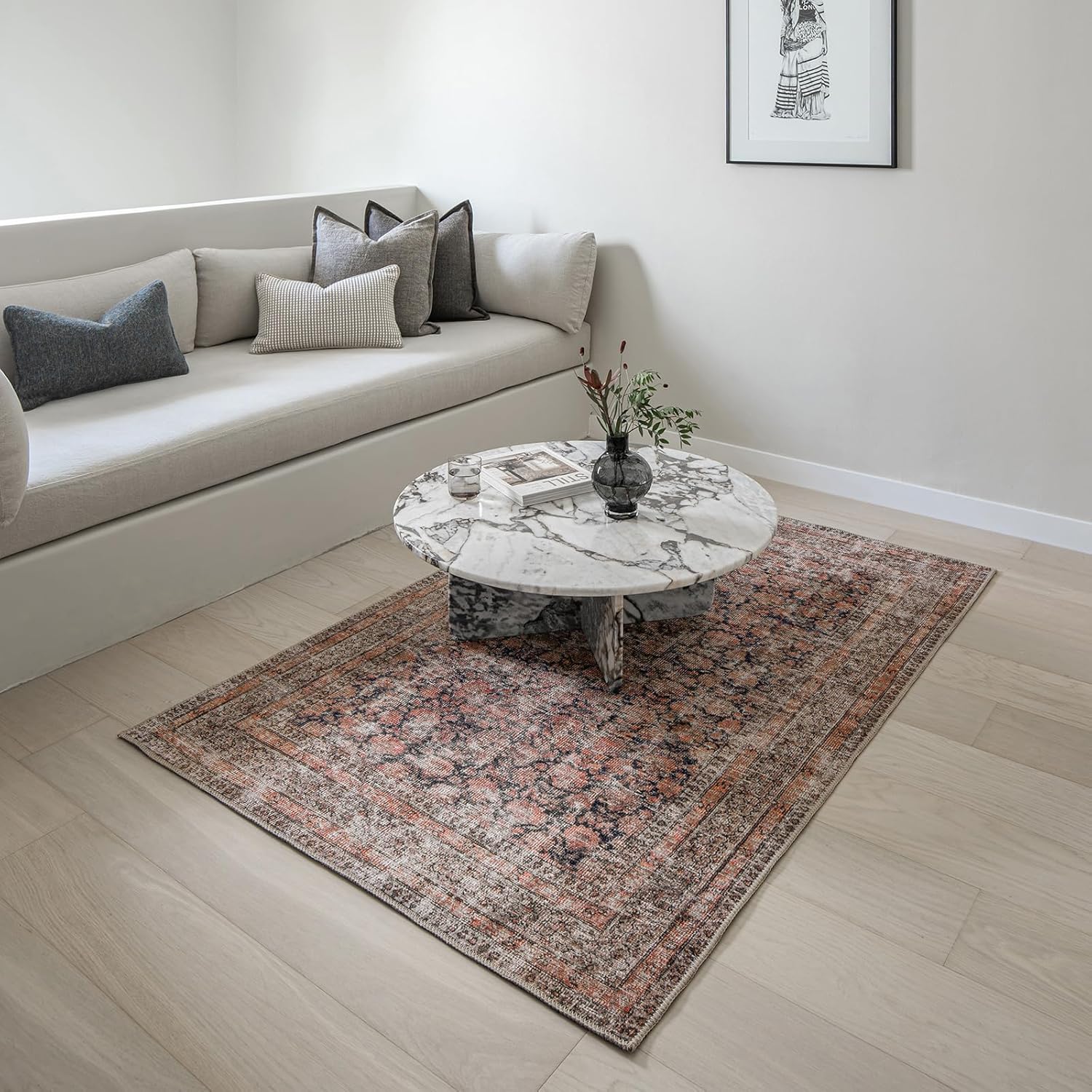 | Color | Rust Terracotta With Indigo Blue, Charcoal, & Beige Accents |