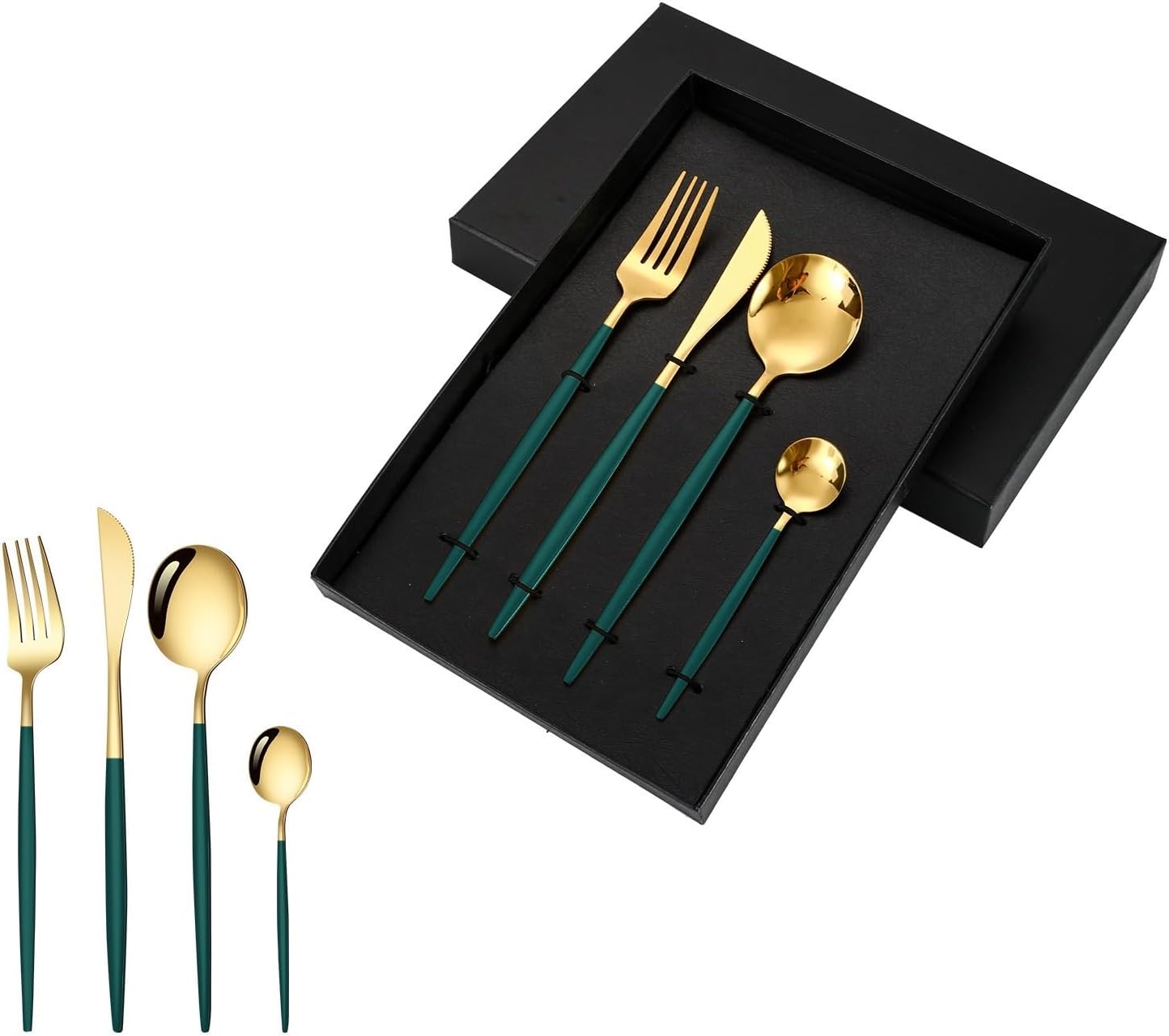 Product Category: Knife and ForkItem No.: Portuguese tablewareMaterial: Stainless steelPolishing process: cloth wheel polishing (mirror polishing)Applicable to: AdultsStainless steel material: 410 stainless steelColor: [Silver] 4-piece setColor: [Gold] 4-piece setColor: [Rose Gold] 4-piece setColor: [Rainbow] 4-piece setColor: [Black] 4-piece setColor: [Black and Gold] 4-piece setColor: [Green Gold] 4-piece setColor: [Pink Gold] 4-piece setColor: [Red Gold] 4-piece setColor: [Blue Gold] 4-piece setColor: [White Gold] 4-piece setProduct quality level: first-classStyle type: Light luxury retro.About our BrandOur brand is GOODJAYVEN. We have always been committed to Household items. Do our best to bring more creative products to our customers.