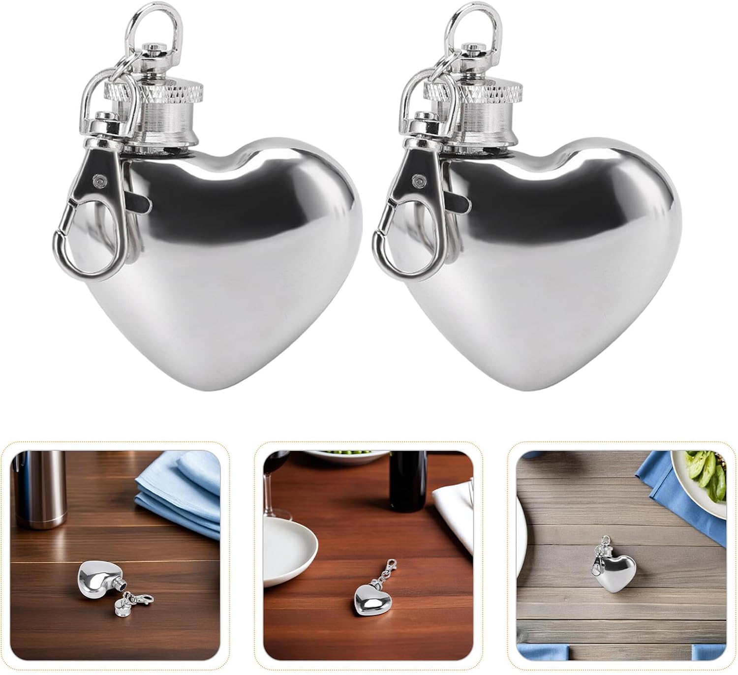 Package List 8 x mini hip flask Characteristics -Leakproof design: the cap fits tightly and prevents spills, making this small heart flask a reliable metal hip flask choice for travel, sports, and daily use in any situation picnic hip flask -Unique heart shape: this heart shaped mini flask adds a touch of personality and romance, serving as a pocket flask for those searching for a distinctive stainless steel hip jar for any event mini heart flask -Material:Stainless steel, zinc alloy, copper -Multipurpose: it is for sharing at parties, weddings, or as a present for friends, family, or colleagues who love a small flask for men stainless steel flask -Materials: crafted from stainless steel flasks with a secure brass lid, this camping wine flask maintains the purity of your beverage -Size:5.00X4.20X2.00cm/1.97X1.65X0.79in -Product Info:Mini heart-shaped wine jug -Outdoor ready: take this portable small flask anywhere—it’s designed for pocket camping flask use, and the keychain feature you never lose it when attached to your keys or backpack small hip flask -Color:SilverGoods Informationstainless steel pocket flask The portable pocket flask is ideal for travel, picnic, and outdoor adventures, allowing you to enjoy your favorite liquor or juice discreetly.pocket whiskey flask Designed as a mini heart shaped flask, this compact wine bottle hip flask is crafted from metal and equipped with a secure copper cap.portable hip flask Its multi-functional style suits both men and women as a classic camping flask