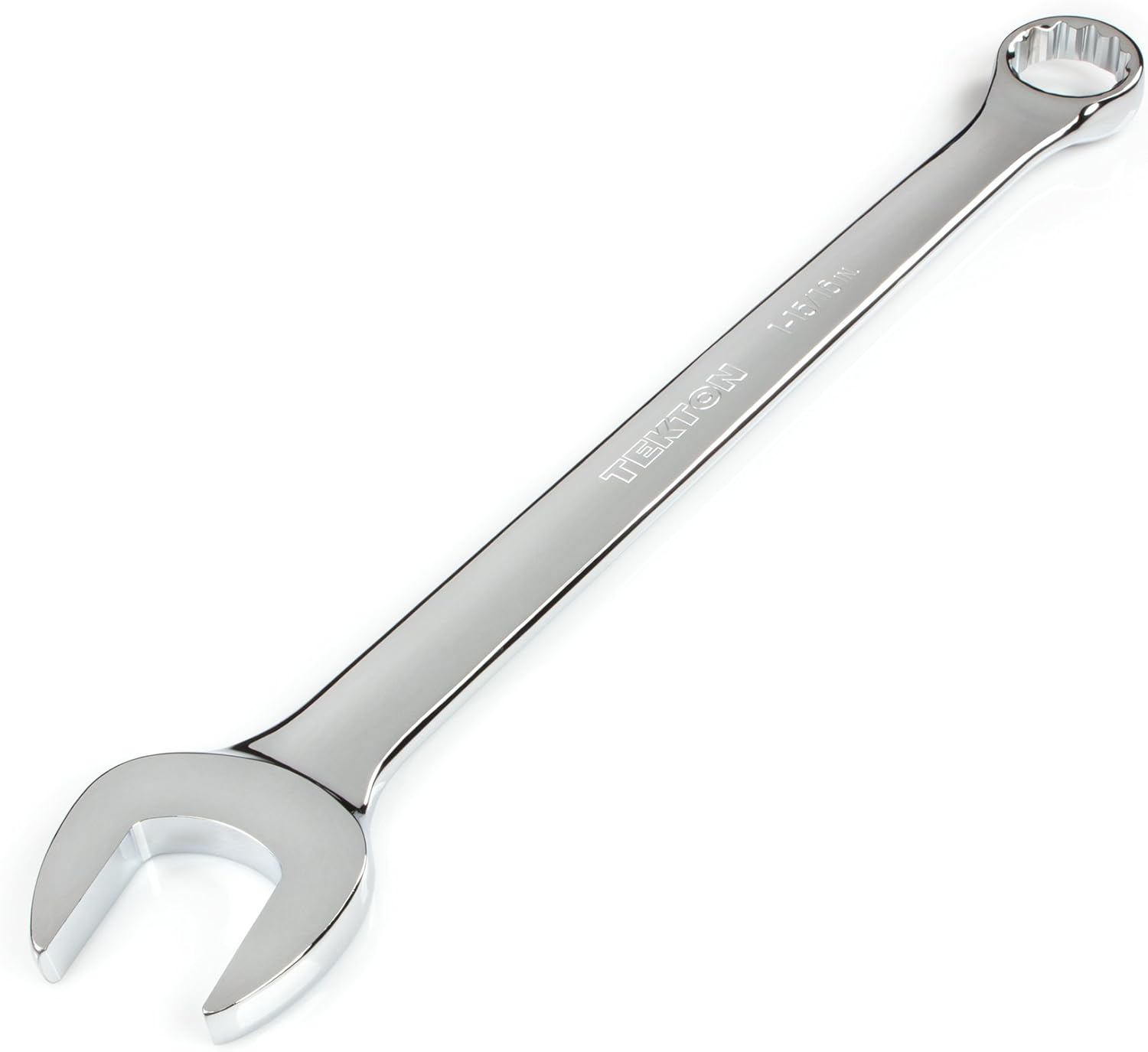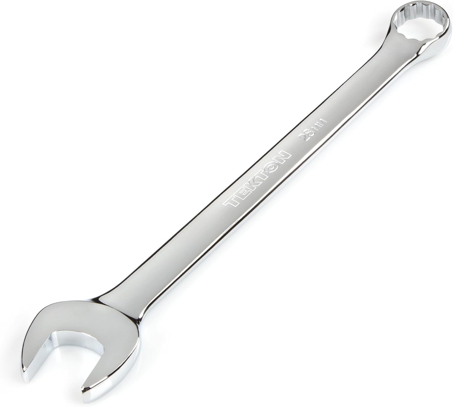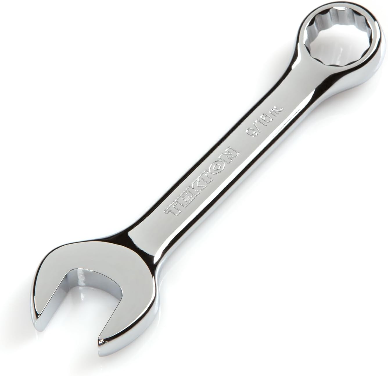 Each Tekton combination wrench is permanently marked with a stamped size marking on both sides for easy identification. The 12-point box end doubles the available access angles compared to a 6-point end. It is designed to contact and apply force to the sides of the fastener head rather than the corners, helping to prevent round-off. The 15-degree offset box end creates clearance for your fingers and makes it easier to reach around obstructions. To reduce the working swing arc in tight spaces, the open end is angled 15 degrees so the wrench can be flipped over with each rotation to engage the fastener twice as often.