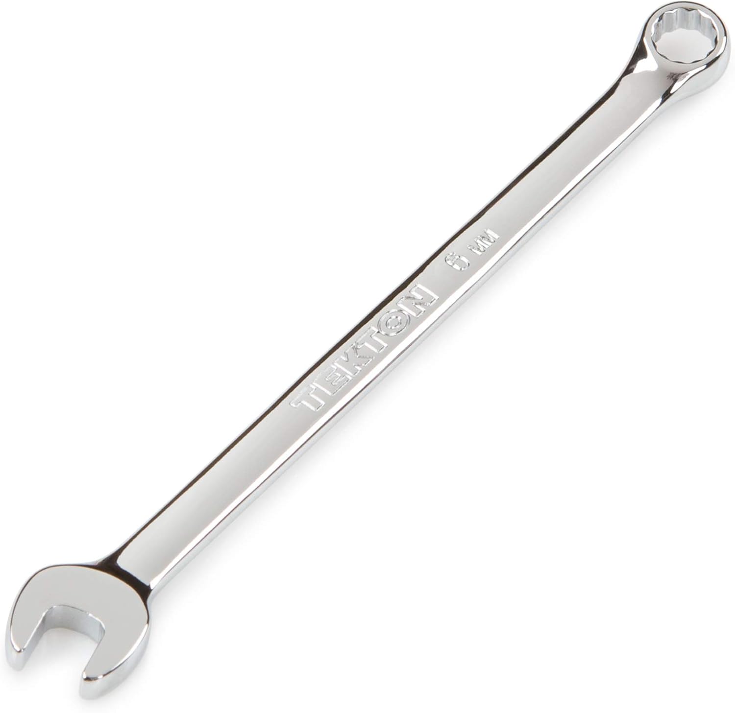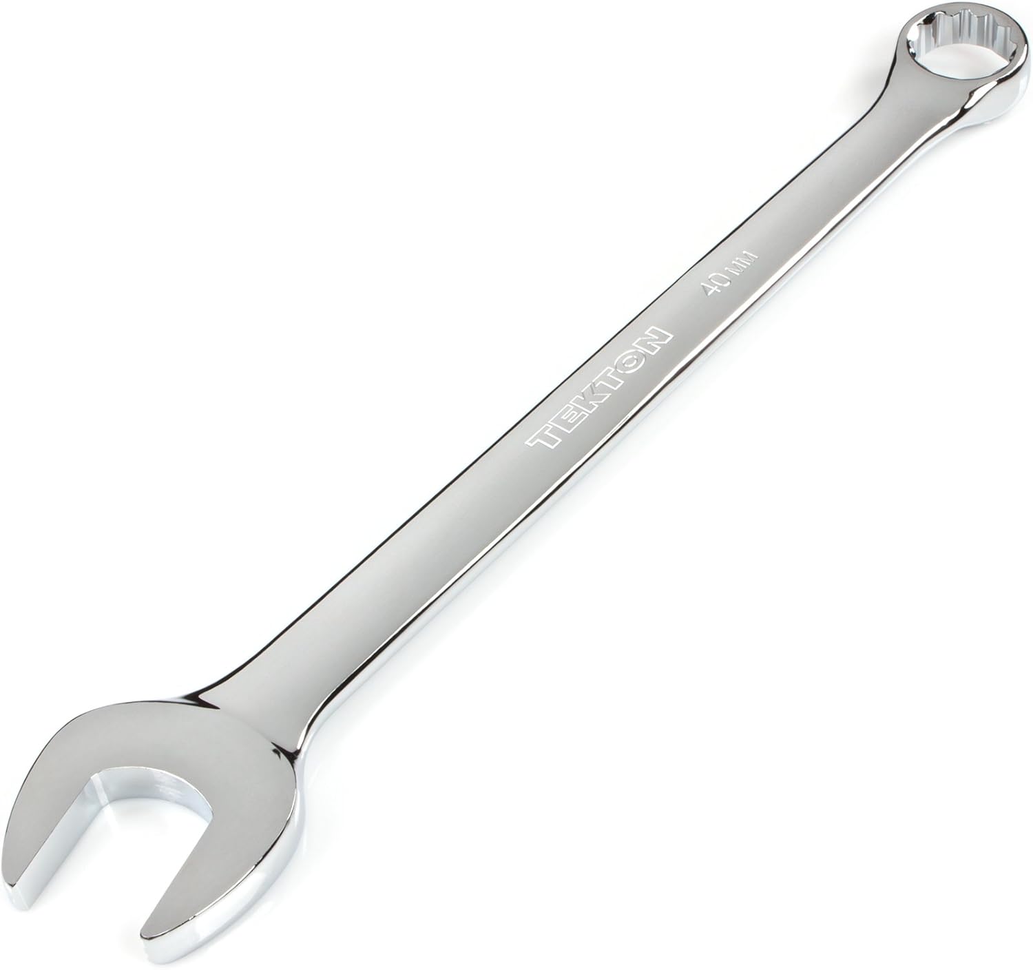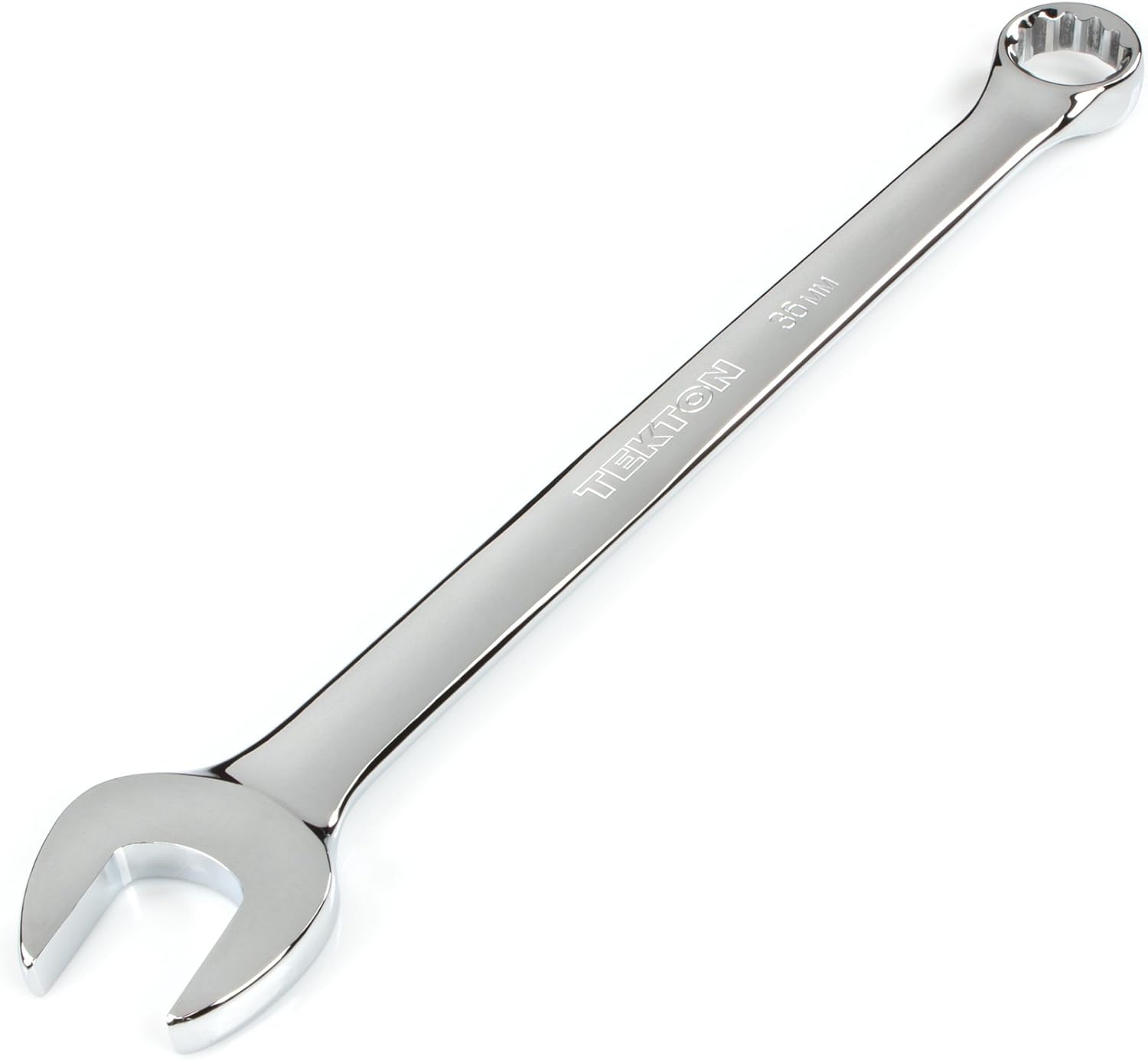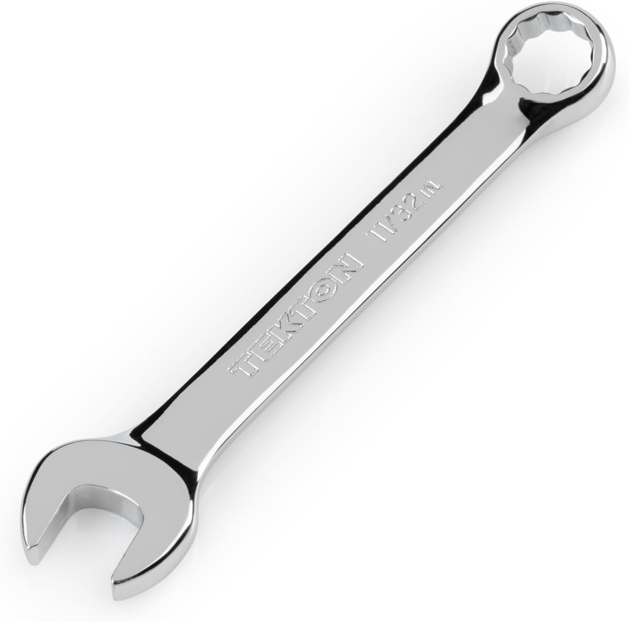 Each Tekton combination wrench is permanently marked with a stamped size marking on both sides for easy identification. The 12-point box end doubles the available access angles compared to a 6-point end. It is designed to contact and apply force to the sides of the fastener head rather than the corners, helping to prevent round-off. The 15-degree offset box end creates clearance for your fingers and makes it easier to reach around obstructions. To reduce the working swing arc in tight spaces, the open end is angled 15 degrees so the wrench can be flipped over with each rotation to engage the fastener twice as often.