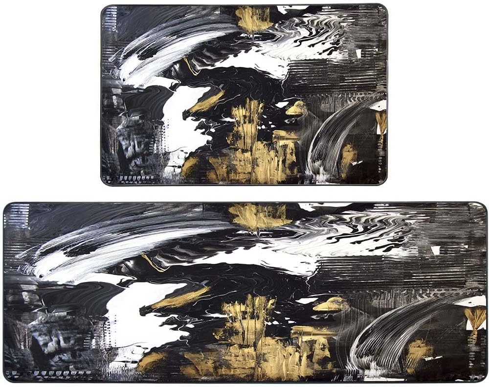 | Model Name | Lot de 3 tapis de cuisine turquoise motif art abstrait gris |