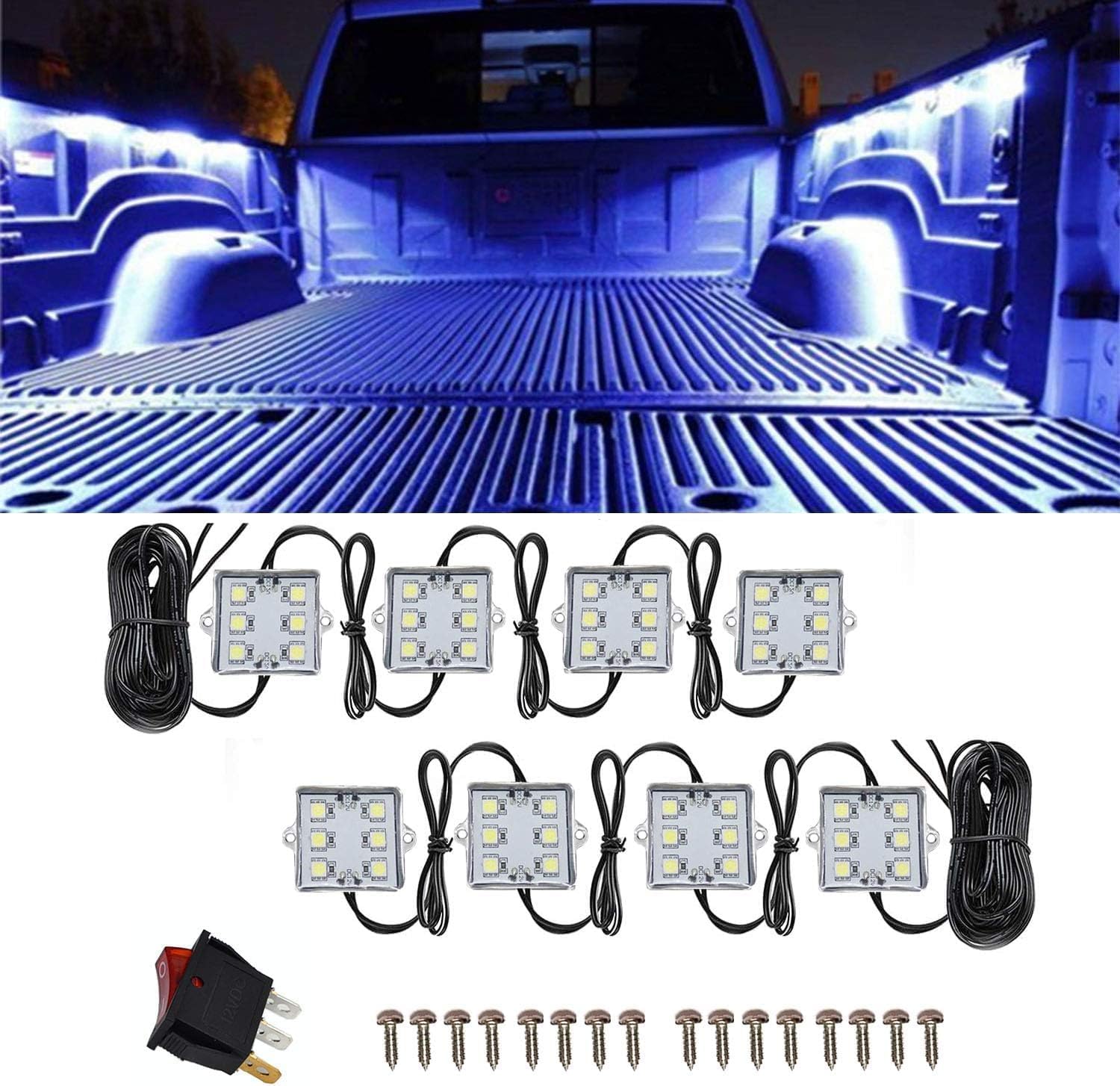 • 【UNIQUE DESIGN】Bed lights for trucks each rectangle lighting pod is small in size but provides plenty of light,each pod has 6LEDs and 48 Bright White SMD LEDs in total. Come with On-Off Switch, allowing you to freely control the 8 Decorative Lighting Pods