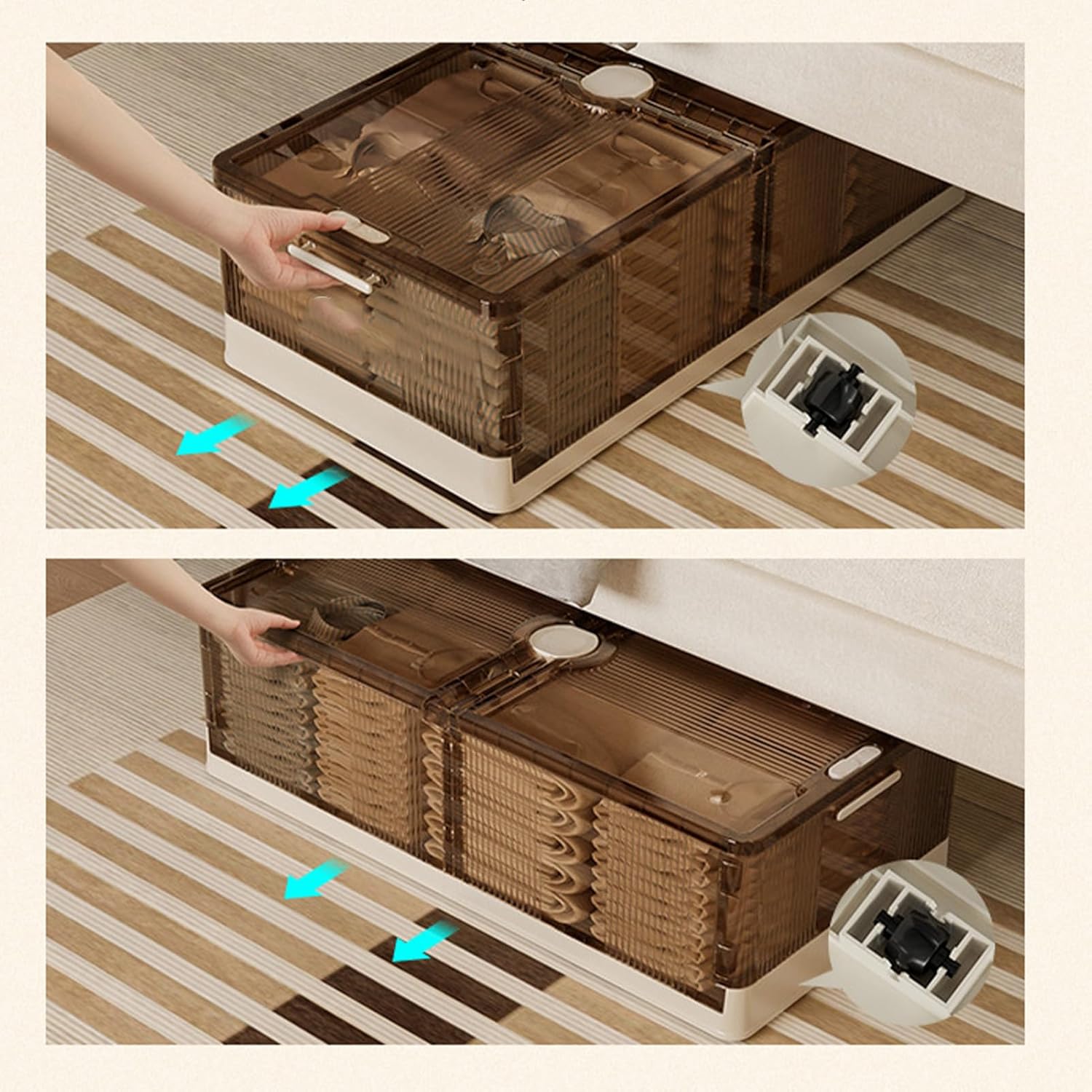 Product DescriptionMaximize your bedroom storage with the Under Bed Storage Containers, offering a convenient and space-efficient solution for organizing clothes, bedding, and more.Spec:Item Type: Under Bed Storage ContainersMaterial: PlasticColor: Transparent CoffeeShort Type Size: Approx. 82 x 40 x 15cm / .2 x 15.7 x 5.9inMedium Type Size: Approx. 82 x 40 x 20cm / .2 x 15.7 x 7.9inPackage List:1 x Under Bed Storage Containers