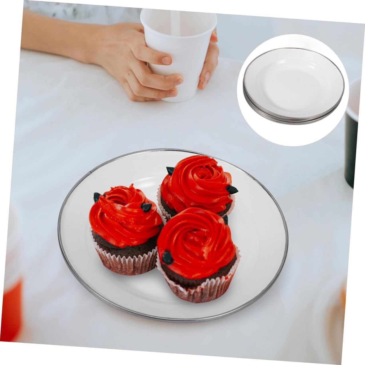 Package List 4 x enamel plates Characteristics -Color:White -Material:Enamel -Size:22.00X22.00X3.00cm/8.65X8.65X1.18in -Product Info:Enamel disc - The plate is suitable for home, bakery, cake shop, food store, office, shopping mall, etc enamel plates camping. -The craftsmanship of these plates a smooth and flat surface, providing a comfortable feel that enhances the using experience small enameled tray. - The material is sturdy and light, which is wear resistance and practical for the long time use. -Designed for convenience, these plates are portable and easy to store, making them ideal for use in homes food serving small plate. - Fine workmanship with attractive appearance, smooth line, the plate is delicate and vintage fruits holder.Goods Descriptionappetizer plates This plate is good for those who appreciate both style and functionality.vegetables plate The Pure White Thickened Snack Enamel Plate stands out with its classic white color and appeal.enamel tray The thickened enamel construction it is robust and , while its easy-to-clean surface makes maintenance a breeze