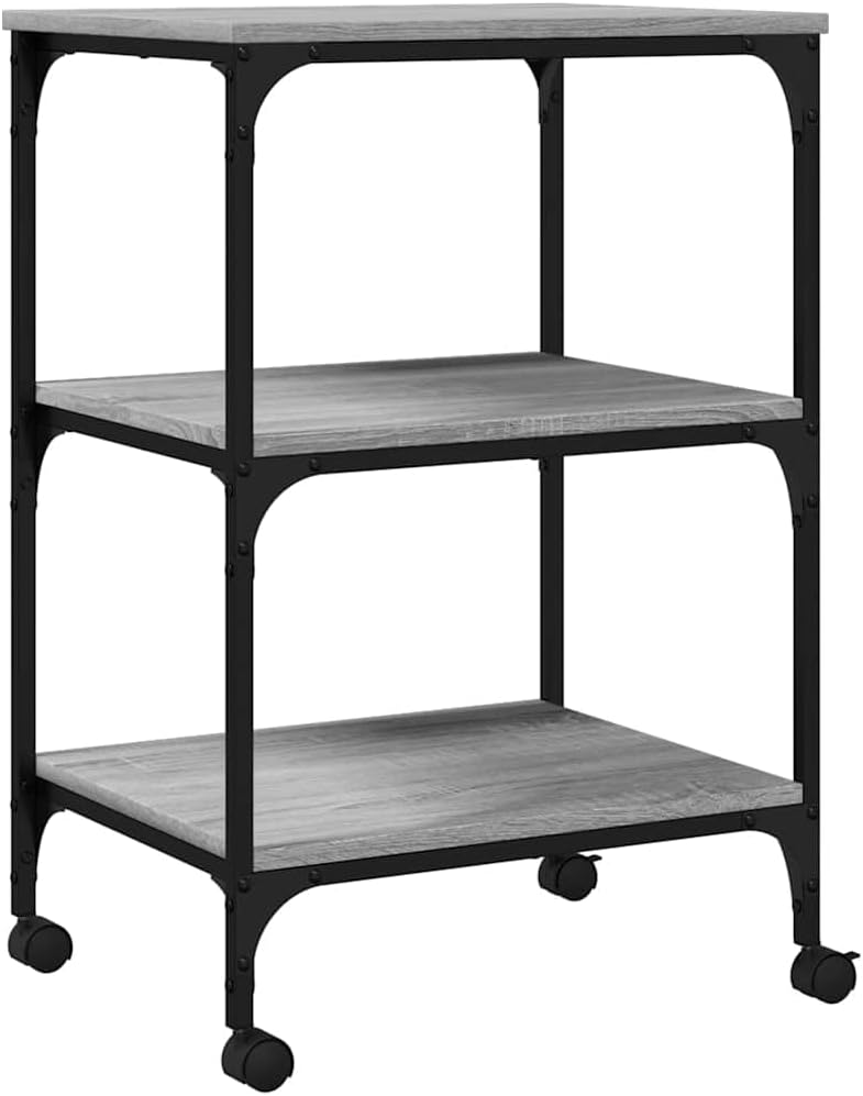 Color: Gray sonomaMaterial: Engineered wood, steelDimensions with castors: 19.7" x 16.1" x 29.5" (L x W x H)With 4 castors and 2 of them are equipped with brakesAssembly required: YesLegal Documents:More details about preventing your furniture from tipping over can be found