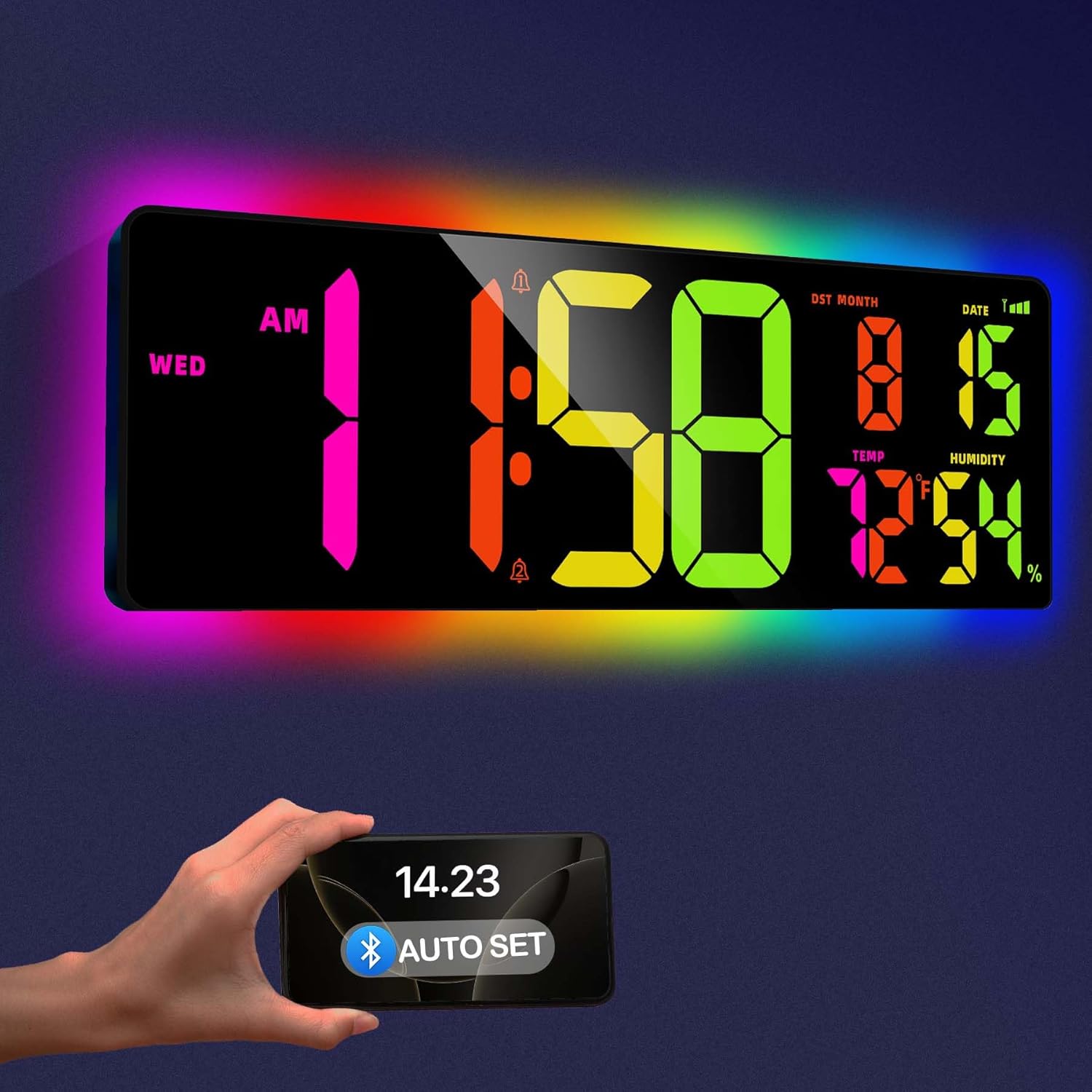 16.5" Large Digital Wall Clock, Bluetooth Sync Time, Count Down Timer, Dual Alarm, Big LED RGB Color, Auto DST, Digital Clock for Living Room Classroom Desk, Christmas Birthday Gift for Senior Mom Dad