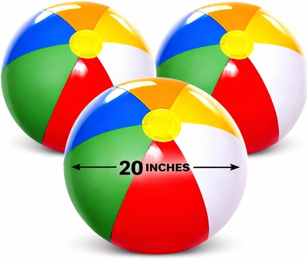PACK OF 3: Large sized 20" Inflatable beach balls for pool for superb fun! The traditional classic rainbow color!