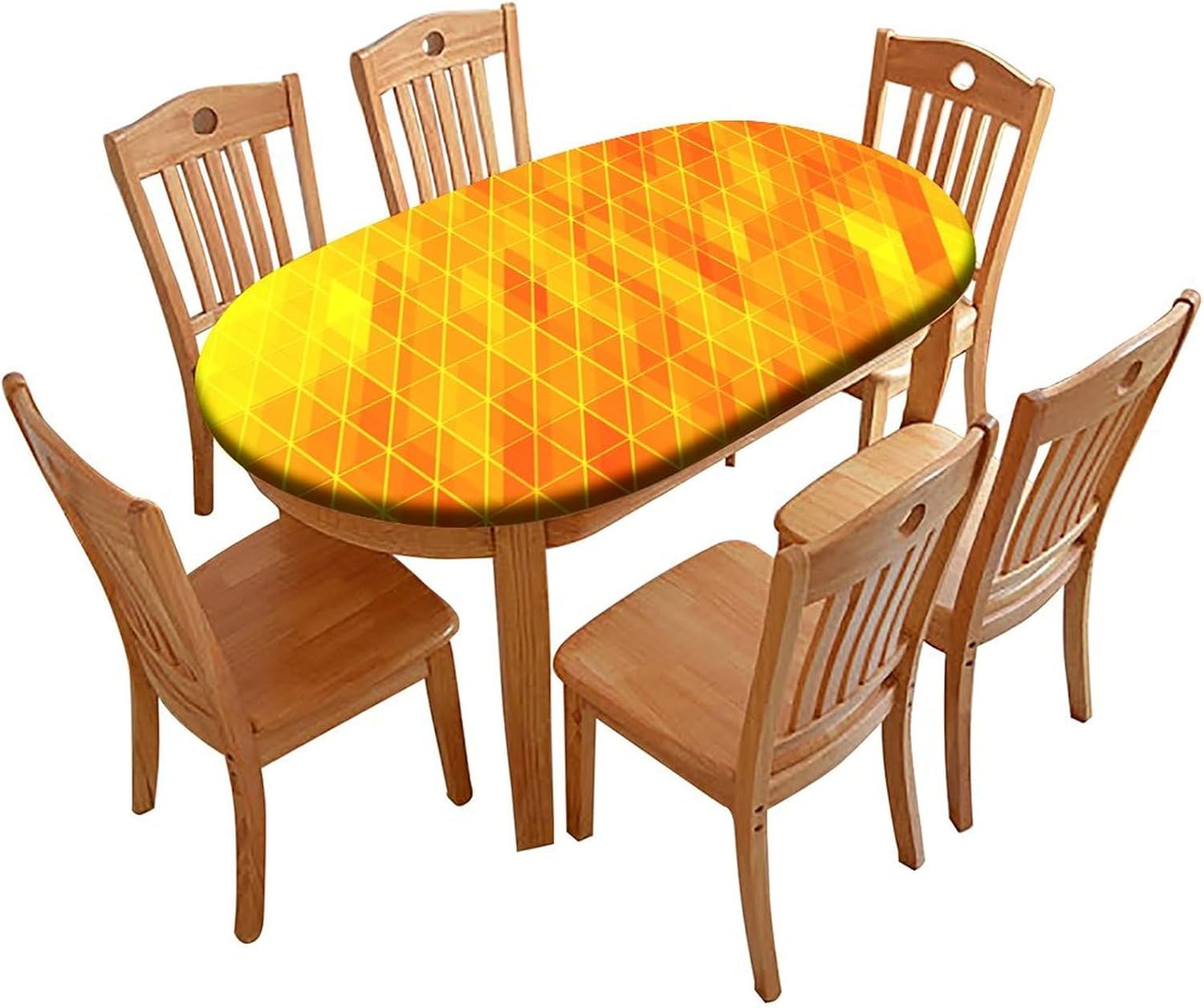 • Perfect Fit for Oval Tables: Designed with elasticized edges, this tablecloth provides a snug, secure fit for oval tables in sizes 42" x 60", 48" x 68", and 52" x 70". Easy to install, it stays in place without the need for additional clips.