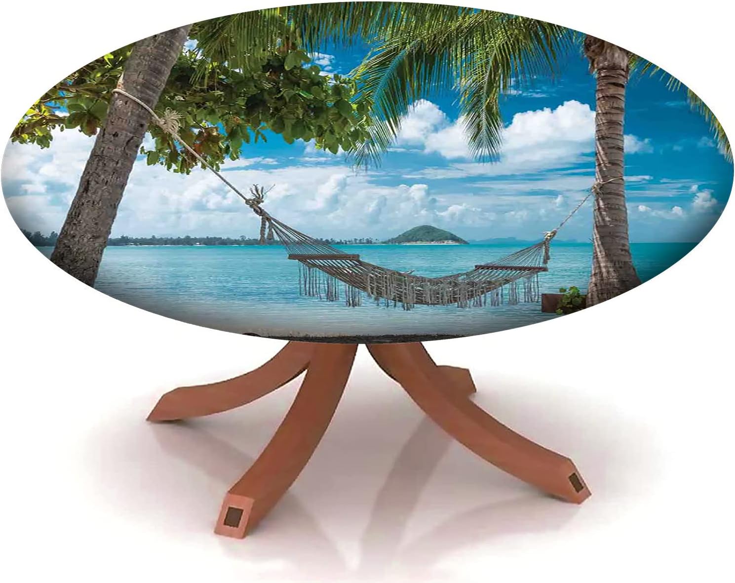 Materials: Polyester Package Includes:1 Piece Round Table Cloth Cover Care Instructions: Machine washable, low iron. not adrift Did you ever get frustrated by tablecloth that keeps falling off or gets easily stained? This polyester tablecloth is your perfect solution, because the elasticized edges will fit your table snugly and prevent the tablecloth from slippage or falling off. Dress up your table for that special occasion while protecting the table from spills, dents or scratches. Refresh any worn or dated table. With elastic band edged , make it easy to fit more table size. Dress up your outdoor dining table with style! These unique designs are perfect for casual gatherings in your garden, summer tables, backyard picnics, BBQ dinners, patio lunches, outdoor parties or picnic tables. Great for everyday use in indoor and outdoor especially with your children and grandchildren. They will brighten up your table and bring a refreshing touch.