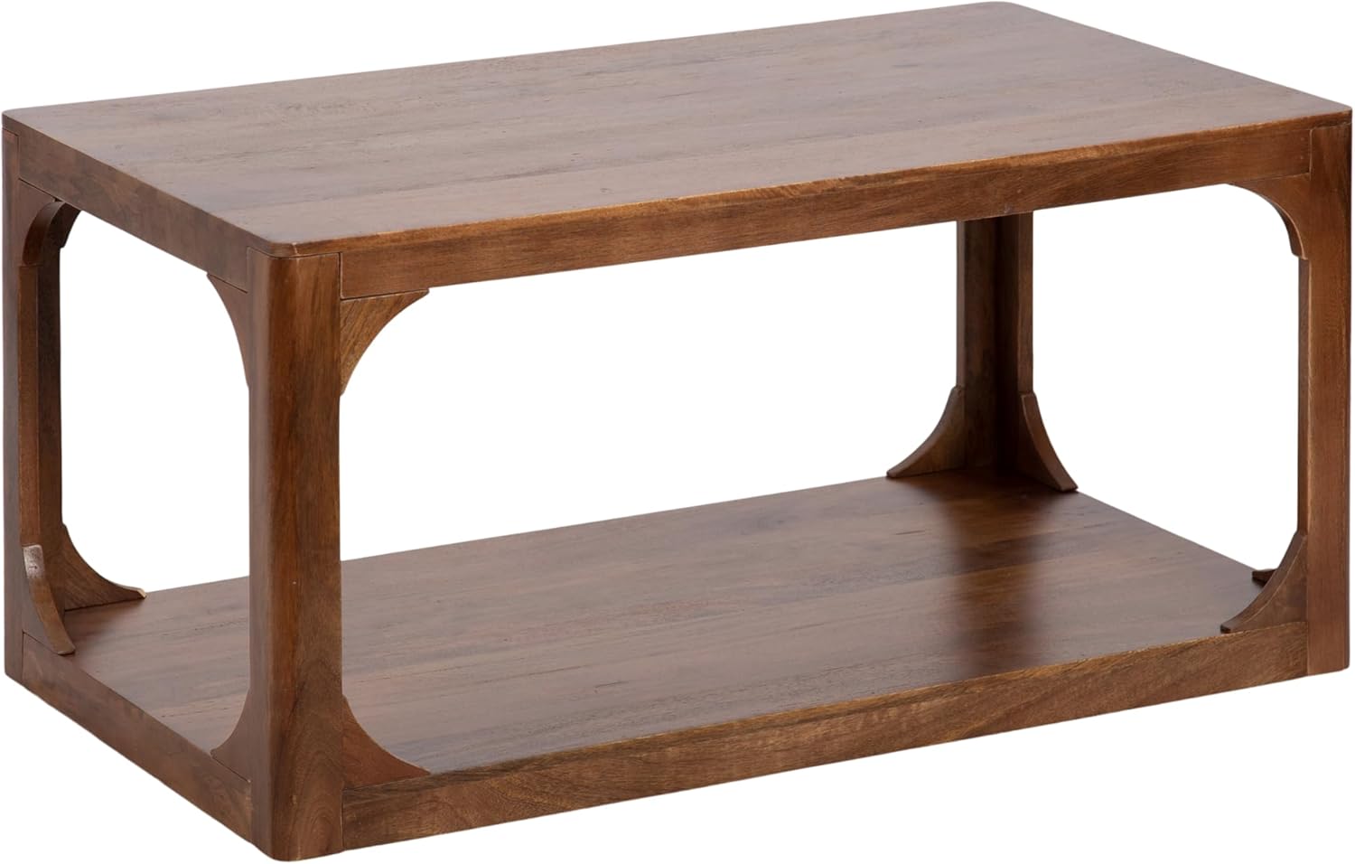 Kate and Laurel Dahl Transitional Rectangular Coffee Table; 36 x 20 x 18; Natural Wood; Modern Rectangle Living Room Table with Solid Mango Wood Construction and Bonus Underlying Storage