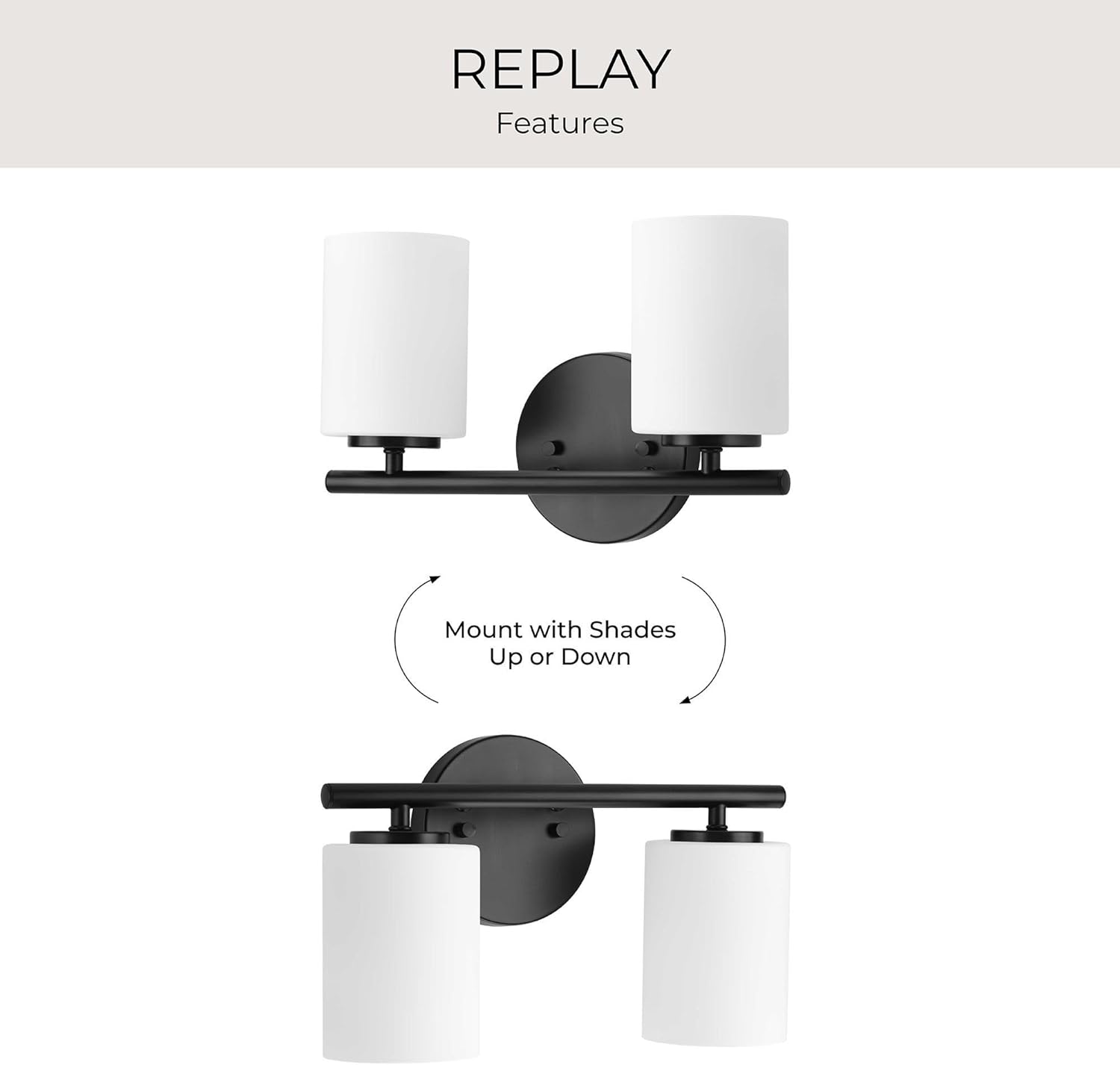 Mingle functional design with sophisticated style with the Replay Collection 2-Light Etched Glass Black Modern Wall Light. Light sources glow from within crisp cylindrical etched glass shades that elegantly perch on round light bases to accentuate the fixture's modern aesthetic. A smooth round backplate, straight arm, and minimalistic light bases are coated in a beautiful black finish to complete the classic design. For ideal illumination, use 2 medium base bulbs that are sold separately (100w max - LED/CFL/incandescent). The wall light is compatible with dimmable bulbs. The wall light's classic design is ideal for any entryway, hallway, foyer, bedroom, sitting room, living room, or bathroom in coastal, luxury, modern, and transitional style settings. It's time to breathe new life into the mundane every day with timeless and truly transformative lighting. Make your purchase today to begin your journey to a whole new lighting experience. Progress Lighting products are designed for exceptional quality, reliability, and functionality.